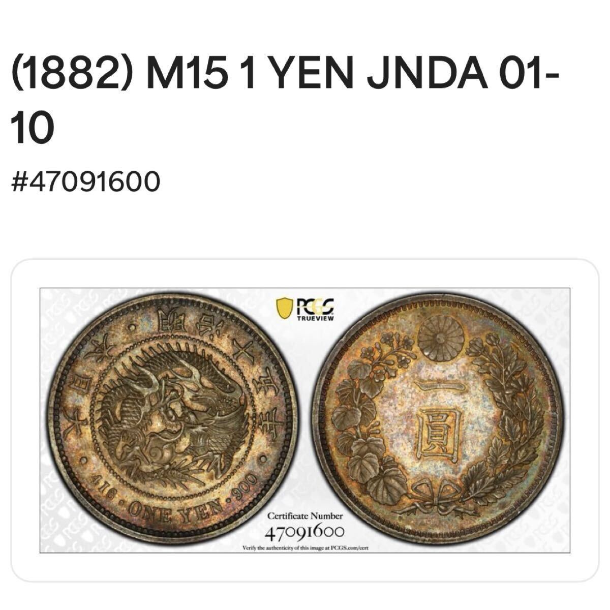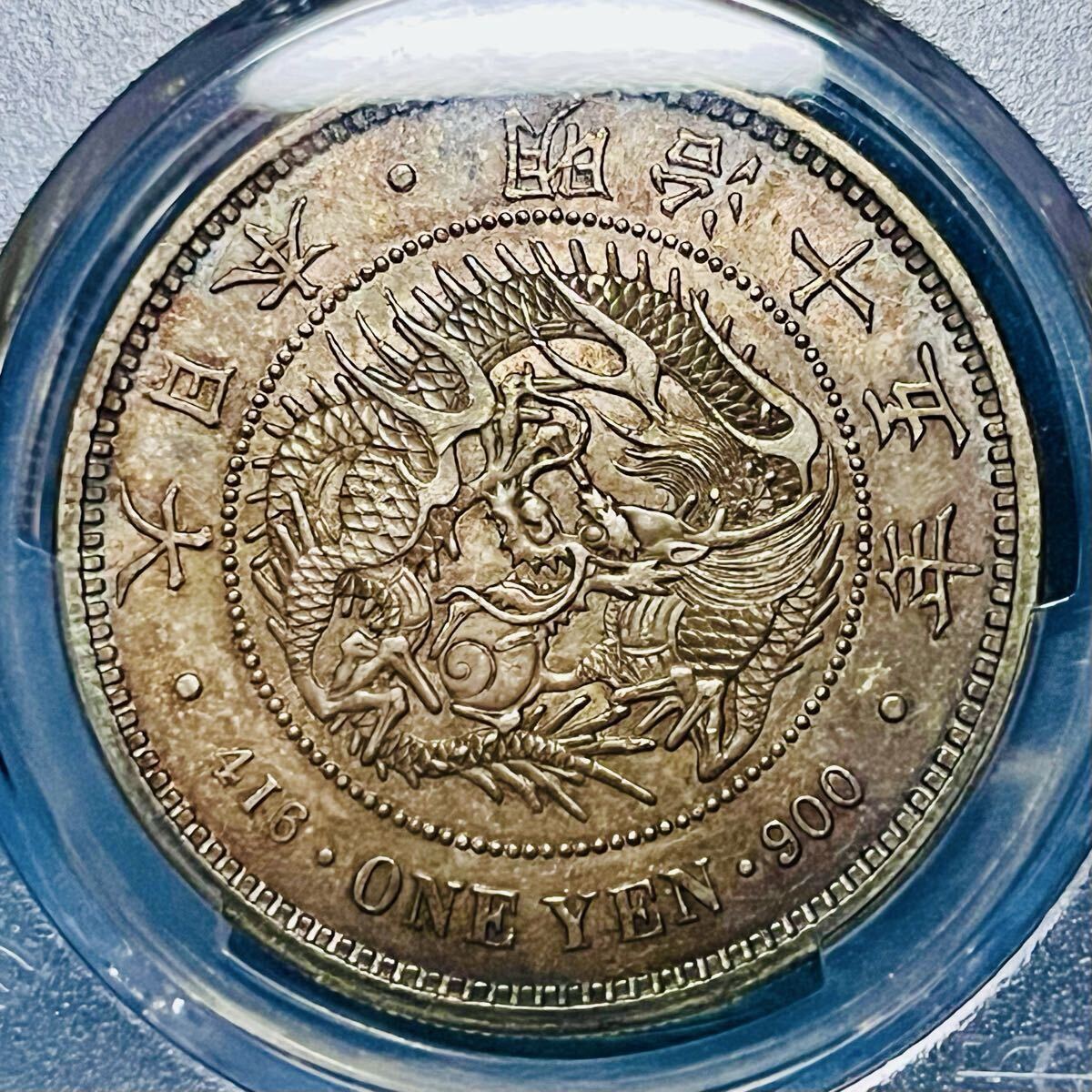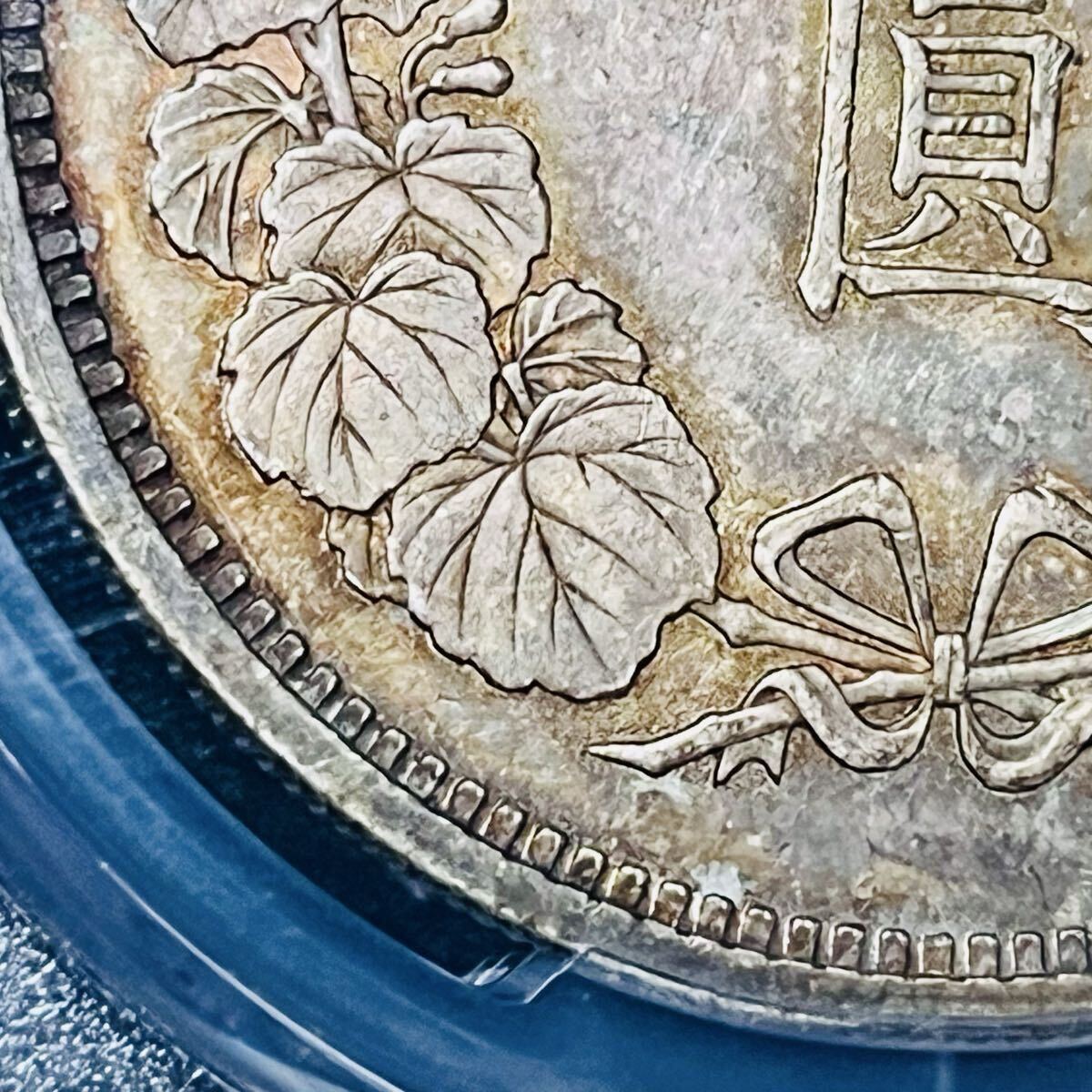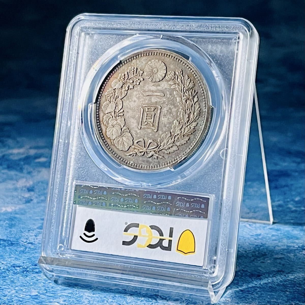 本品はPCGS MS61の未使用グレードで、暁色の金地に紅(マゼンタ)と翠(シアン)が分かれて差し込む、「金暁双彩トーン(きんぎょう・そうさい)」が広がる一点ものです。 38.6mmの大型面で立体感と奥行きが際立ちます。