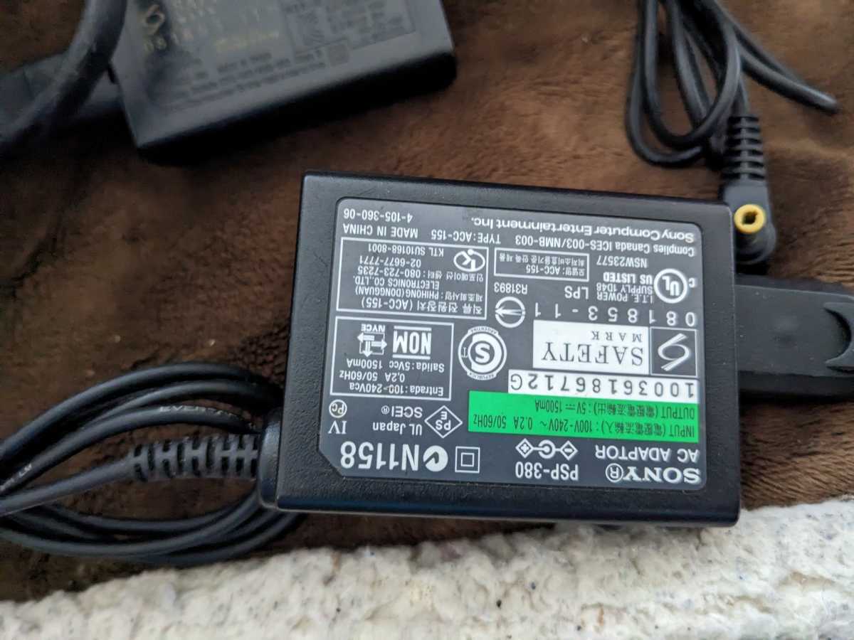 SONY 純正 PSP充電器 PSP 専用ACアダプター (PSP-380) (PSP-2000 3000シリーズ専用) 電源ケーブル 5V 1500mA 動作確認