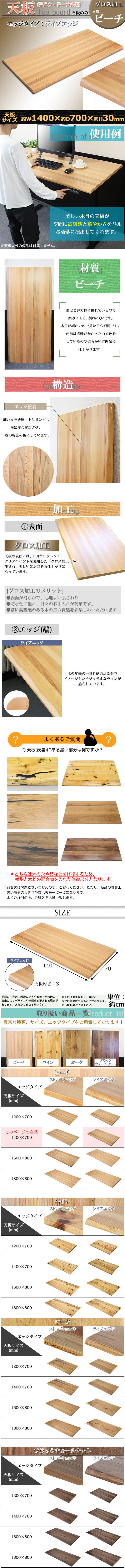 | 商品名 | 送料無料 天板 デスク テーブル 天板のみ ビーチ材 W1400×D700×H30mm ビーチ ライブエッジ グロス加工 高級 木製 木材 天然木 無垢材 耳付き ブナ tenban140beechg |