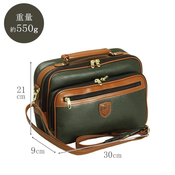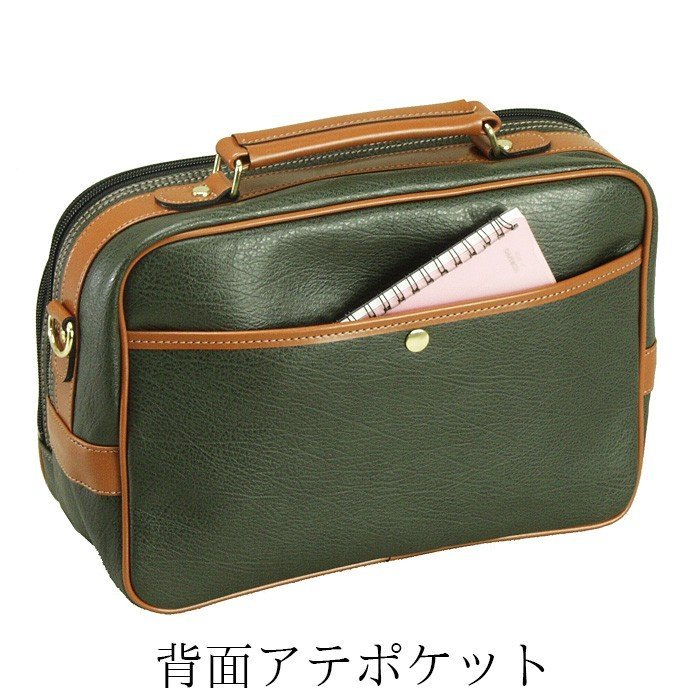 | ◆ 紳士の装いに風格を添える上品なデザイン。 ◆ 街歩きや旅行のサブバッグに最適。 ◆ 整理しやすいポケット類も充実。 ◆ リーズナブルな価格帯で高級感あるテイスト。 ◆ 父の日や誕生日などの贈り物にも最適。 【 商品詳細 】 サイズ横幅30cm × 高さ21cm × 厚み9cm 対応サイズB5サイズ( 25.7cm × 18.2cm ) 重量約550g(ショルダーベルト含まず) 素材合皮ボンディング カラー01-黒、02-カーキ 生産地日本製( 兵庫県豊岡市にて生産 ) 仕様【正面】 ・ファスナーポケット ・ファスナーアウトポケット 【正面アウトポケット内部】 ・アテポケット ・ペン差し ・小物ポケット ・マチ付きオープンポケット ・カード入れ 【メインルーム内部】 ・アテポケット 【背面】 ・ホック付きアテポケット その他・着脱式肩アテ付きショルダーベルト ・底板付き ・天取手付き 現在お試し大特価、送料無料、値引き中でお買い得となっています。 ※ 予告なく仕様変更する事がありますのでご了承下さい。 | |
