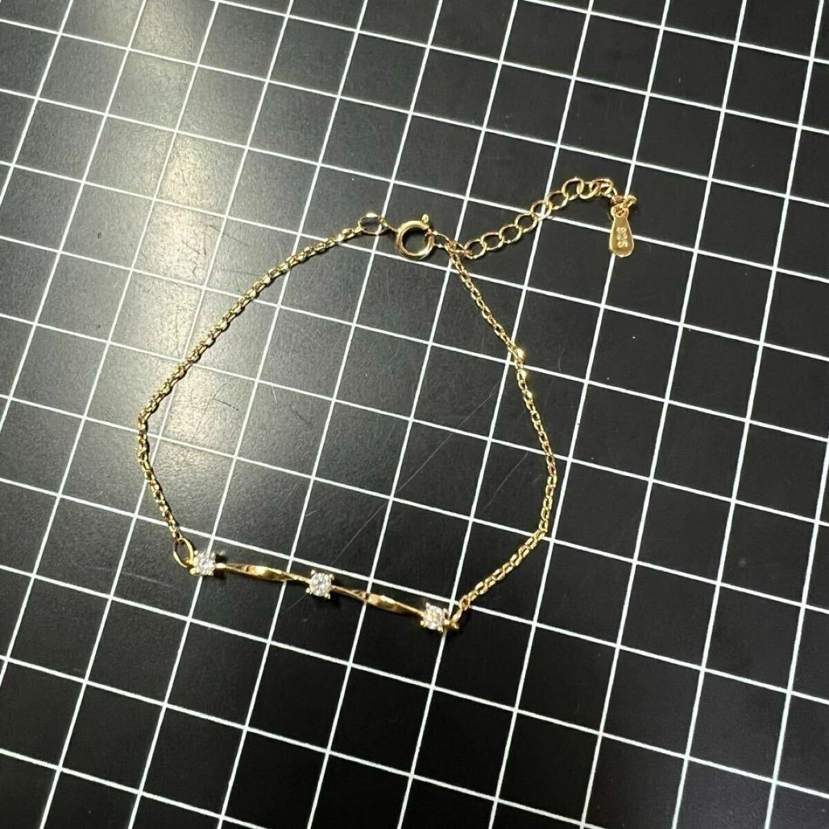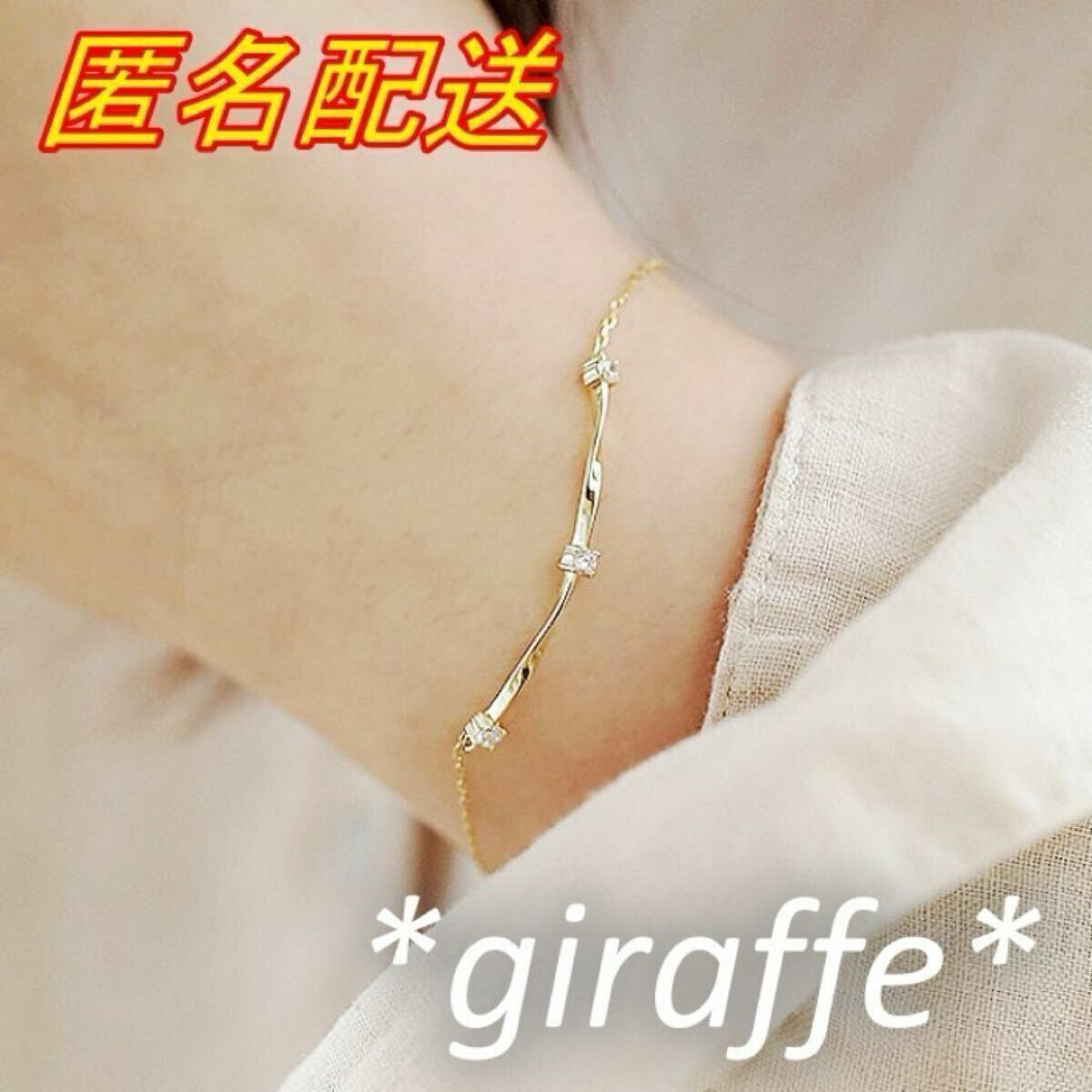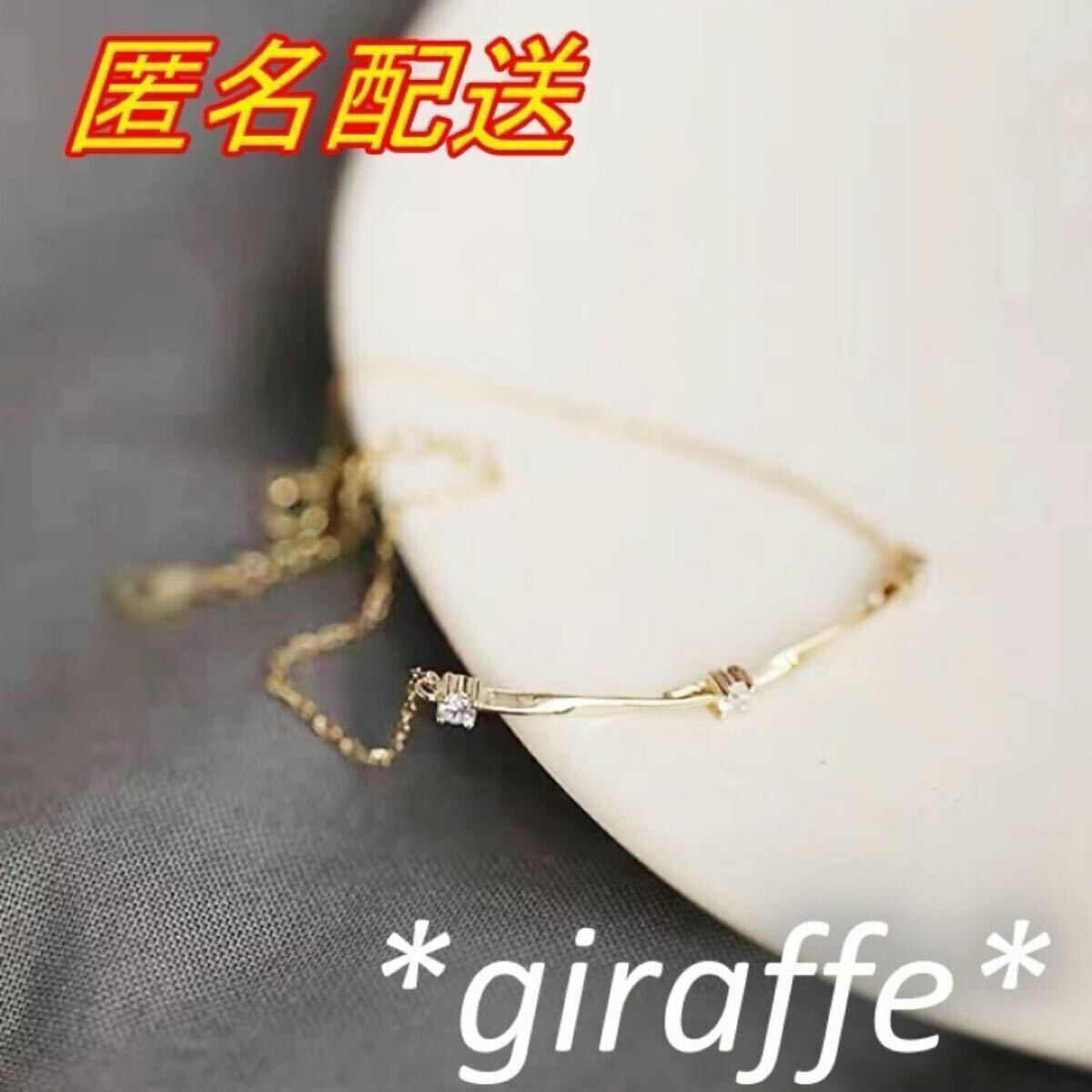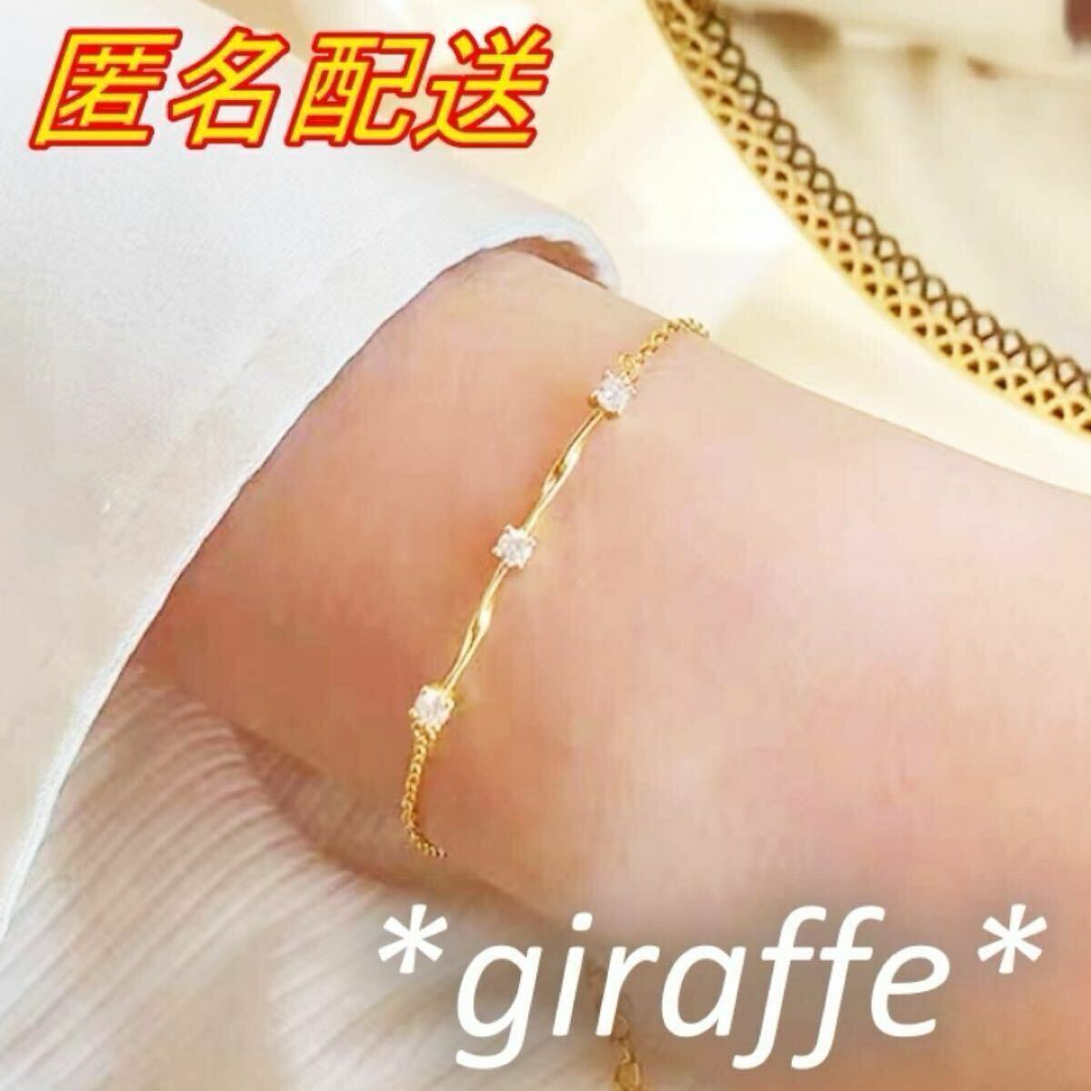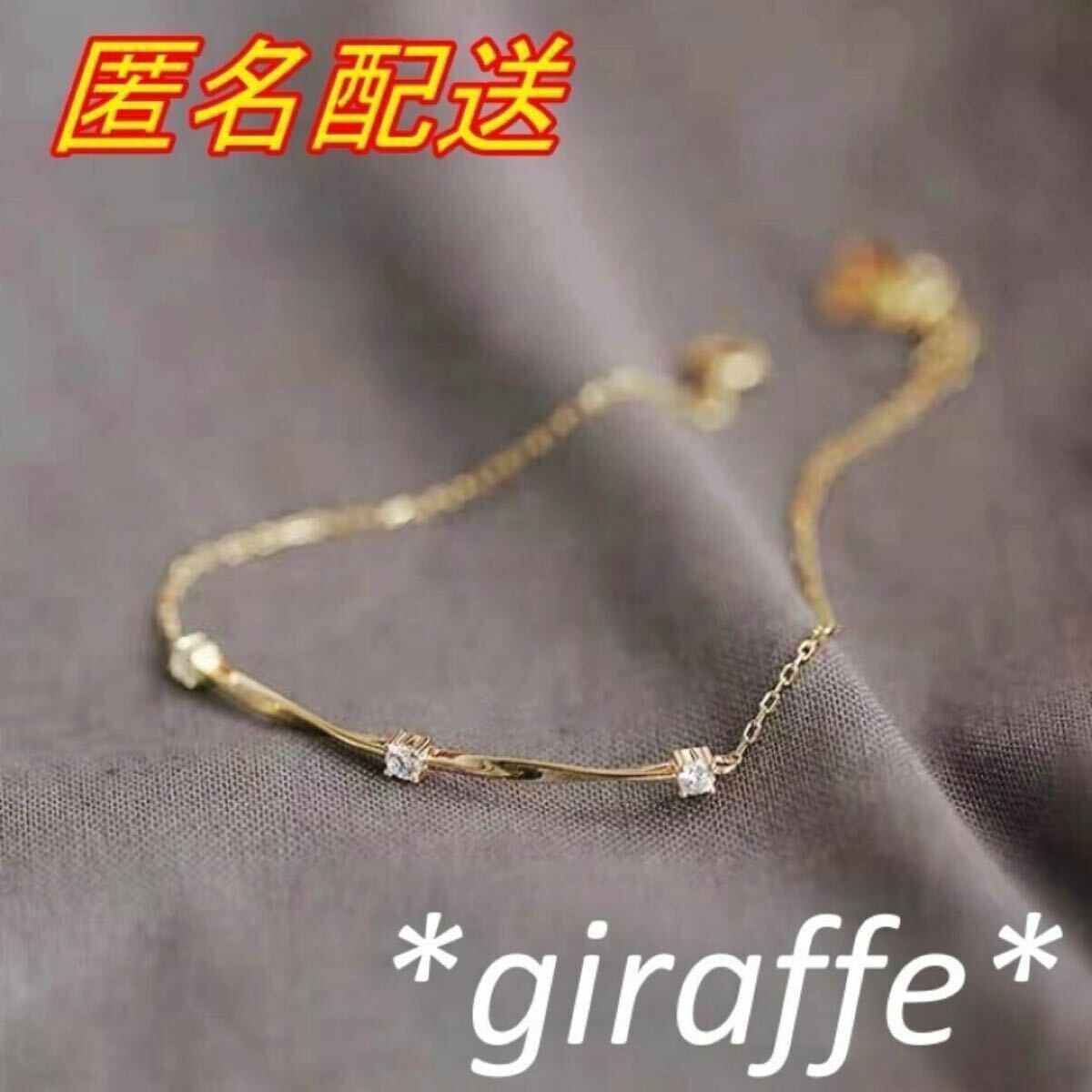 D042 匿名配送 ブレスレット レディース ジルコニア ツイスト ゴールド s925 チェーン 細め 華奢 上品 エレガント アクセサリー