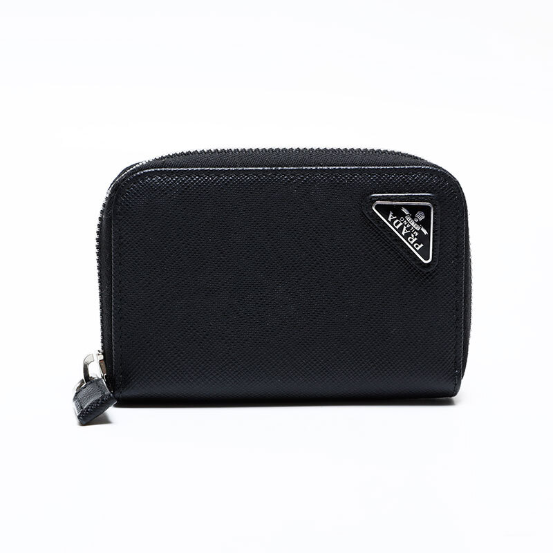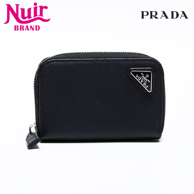 プラダ PRADA コインケース コンパクト ウォレット ラウンドジップ サフィアーノレザー トライアングルロゴ ブラック