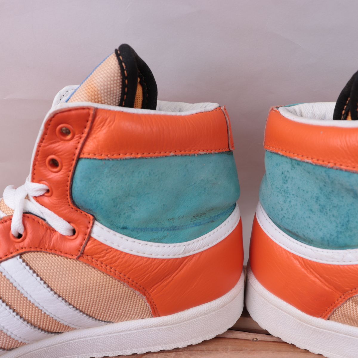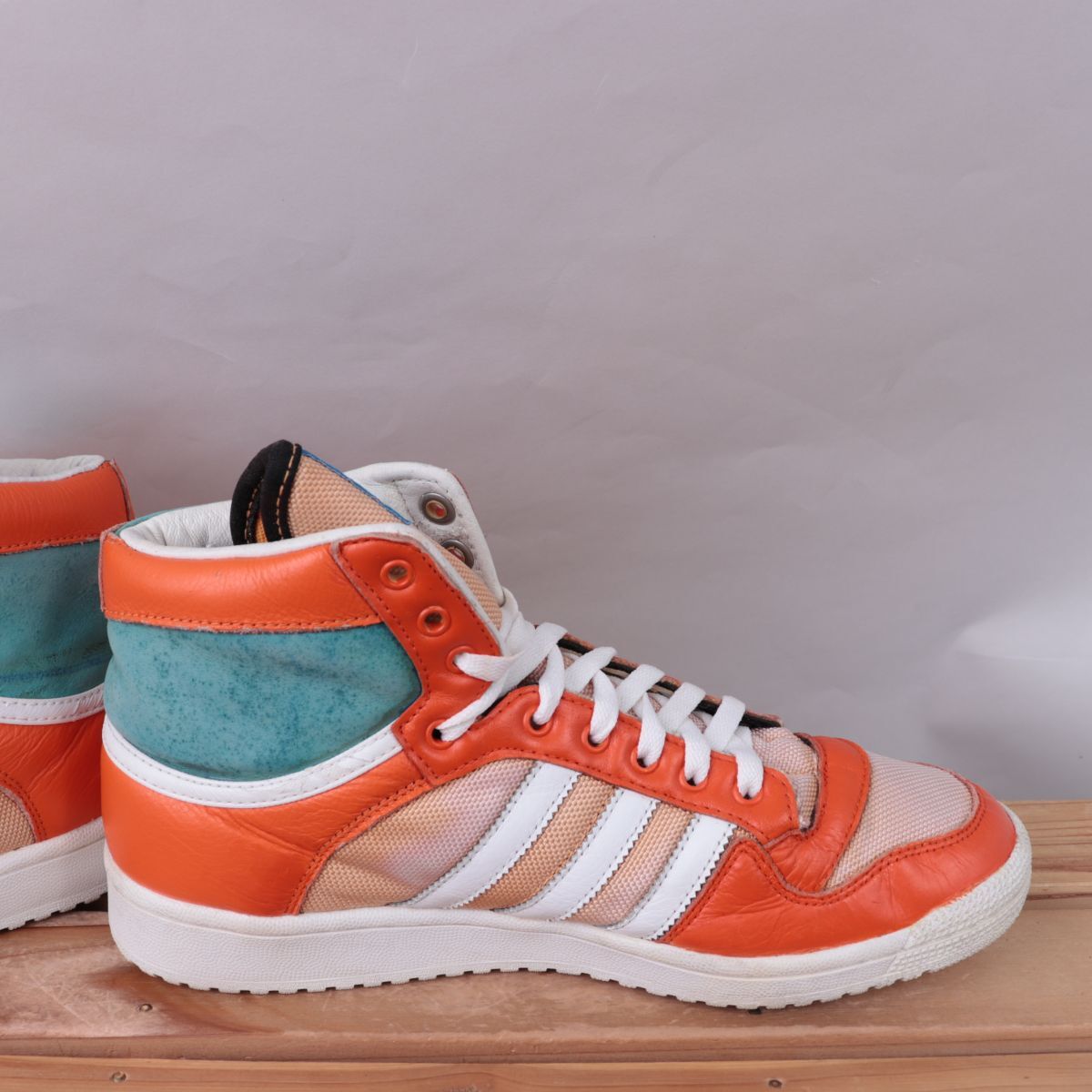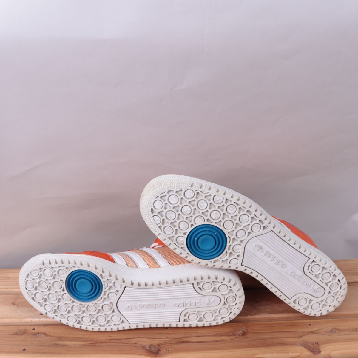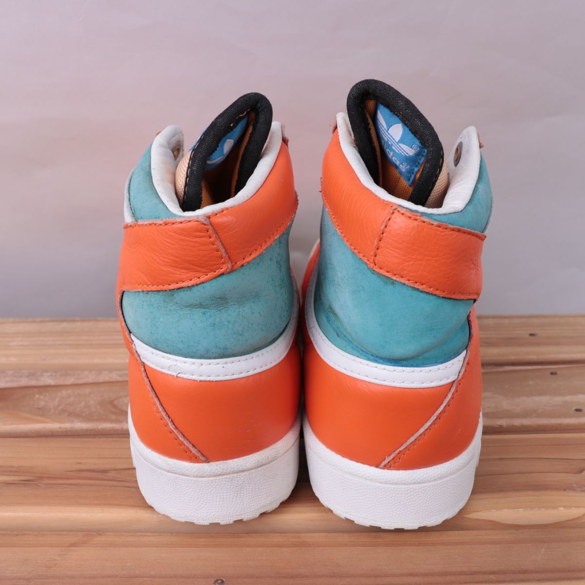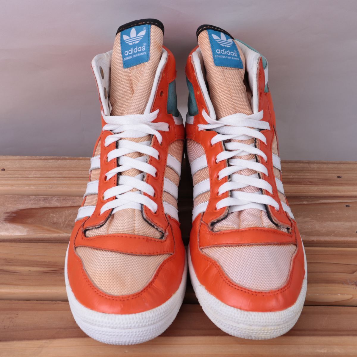 z1511 アディダス ハイカット スニーカー US8 1/2 26.5cm/オレンジ 白 ライトブルー adidas メンズ スニーカー 中古