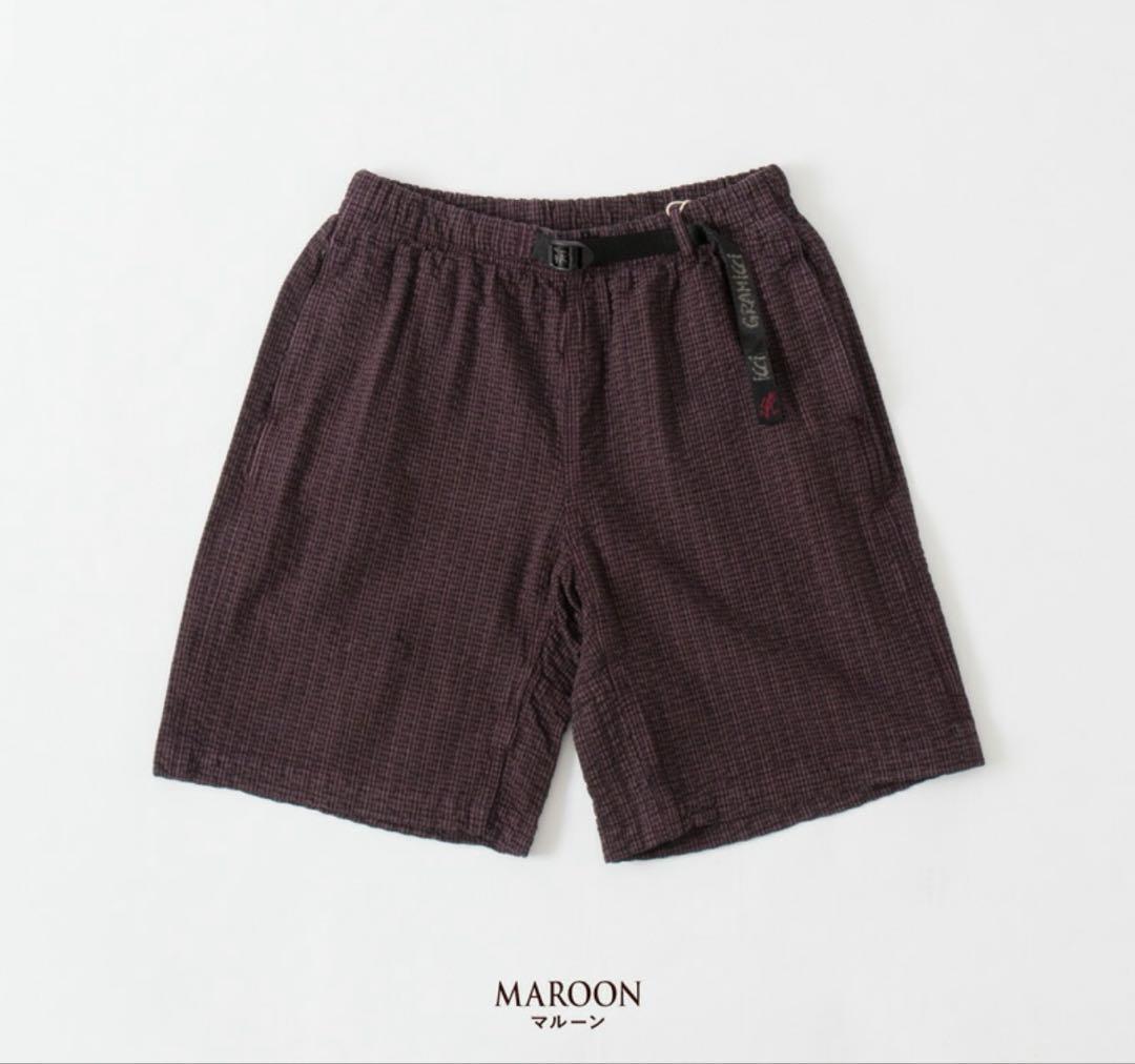 GRAMICCI シアサッカー Gショーツ M ダスティマルーン 両サイドポケット