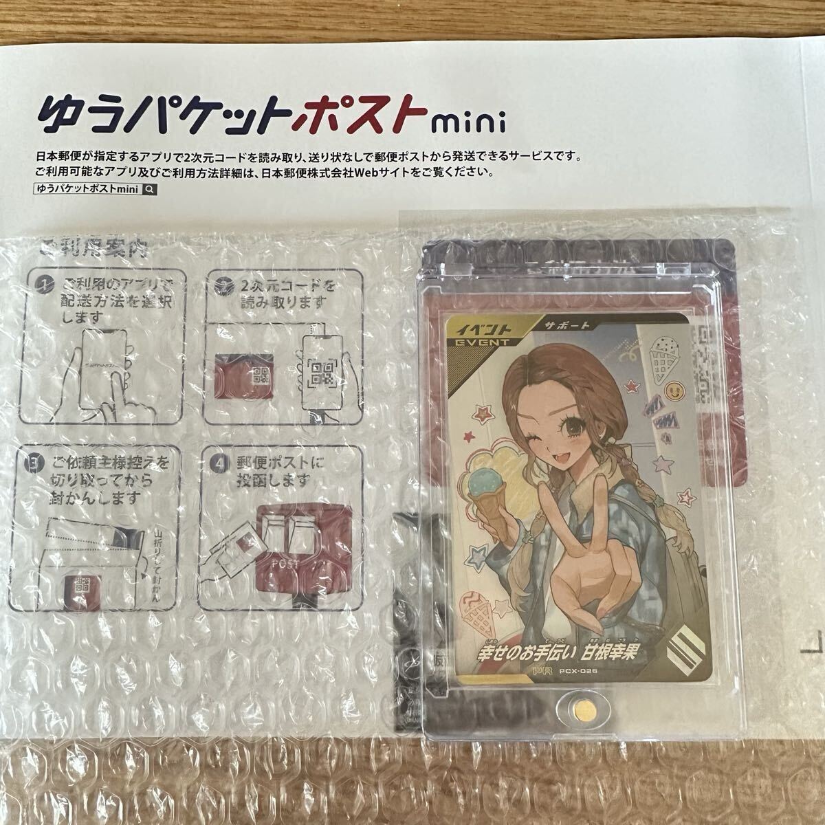 写真3枚目のようにトレカ用マグネットローダーに入れ、ゆうパケットポストmini用の緩衝シート袋を使用します。