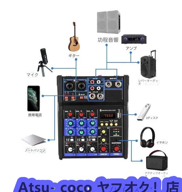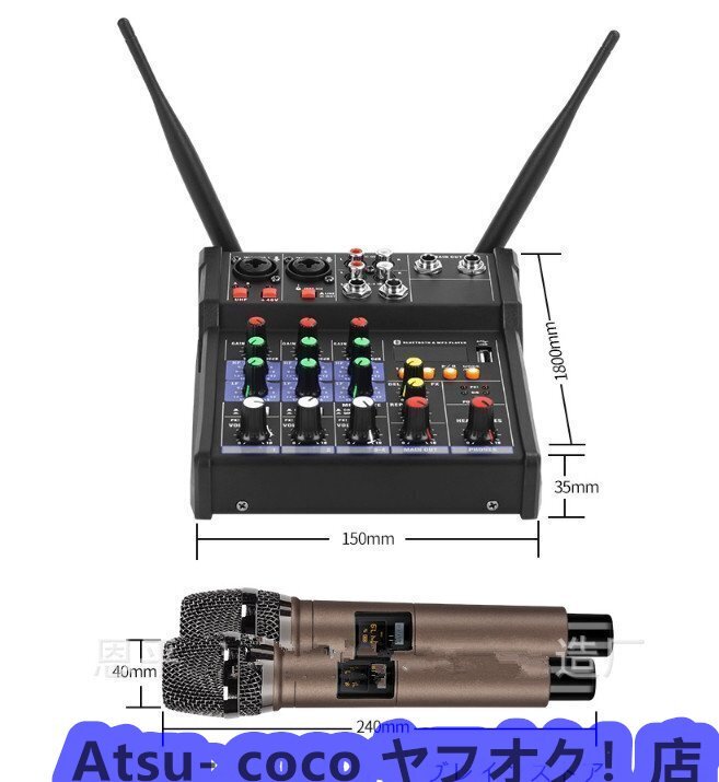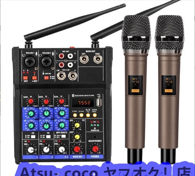 ワイヤレスマイク付き4チャンネルオーディオミキサー★ミキシングコンソール★マイクロフォン付きです