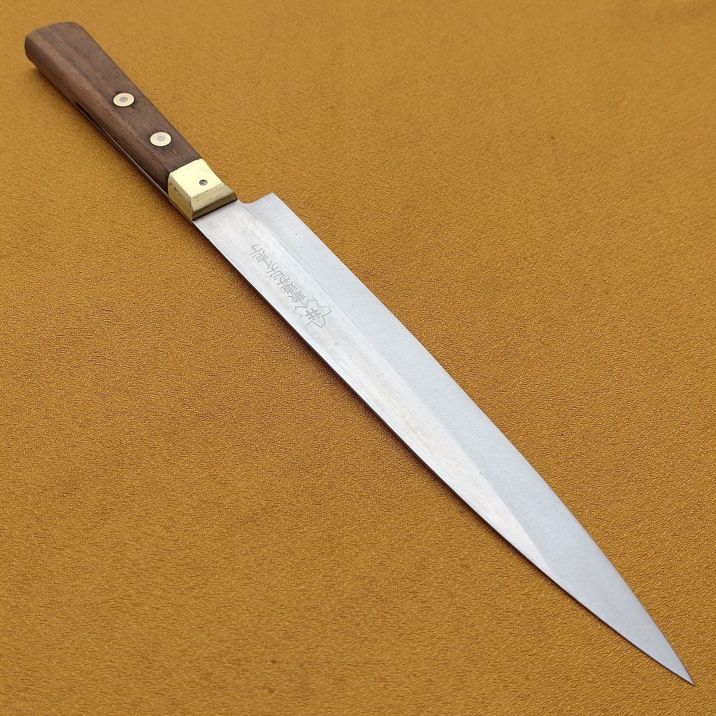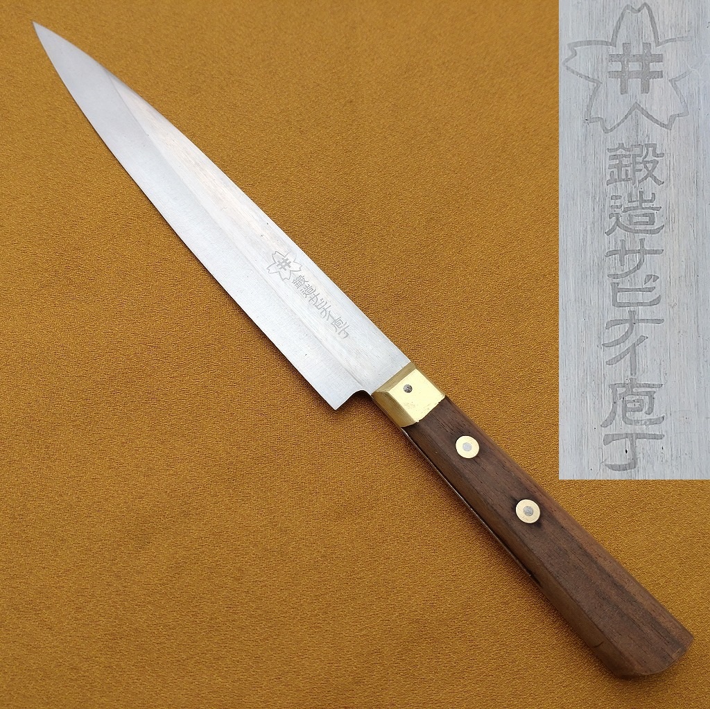 筋引包丁 桜井 鍛造 サビナイ庖丁 刃長約202㎜ 両刃 洋包丁 真鍮桂 調理器具 刃物 日本製 【4483】【b】【r】
