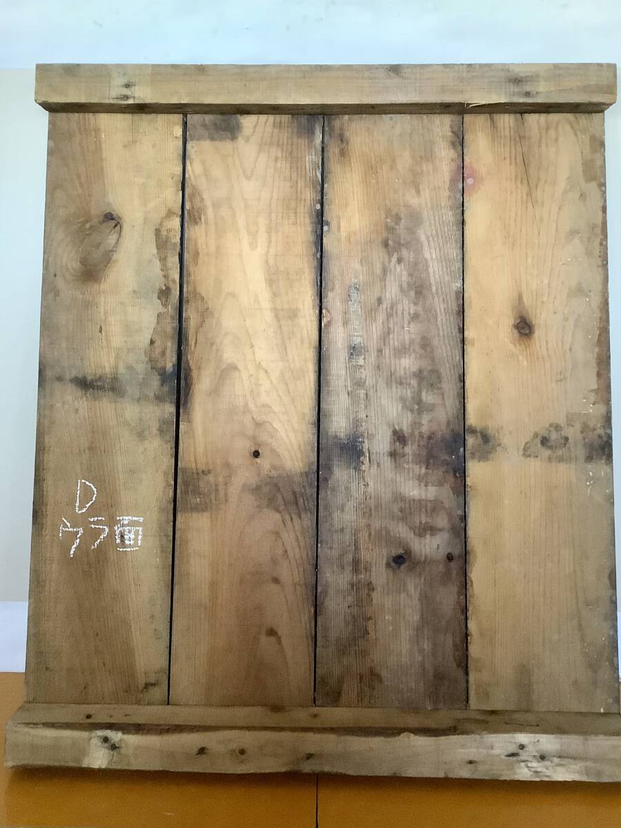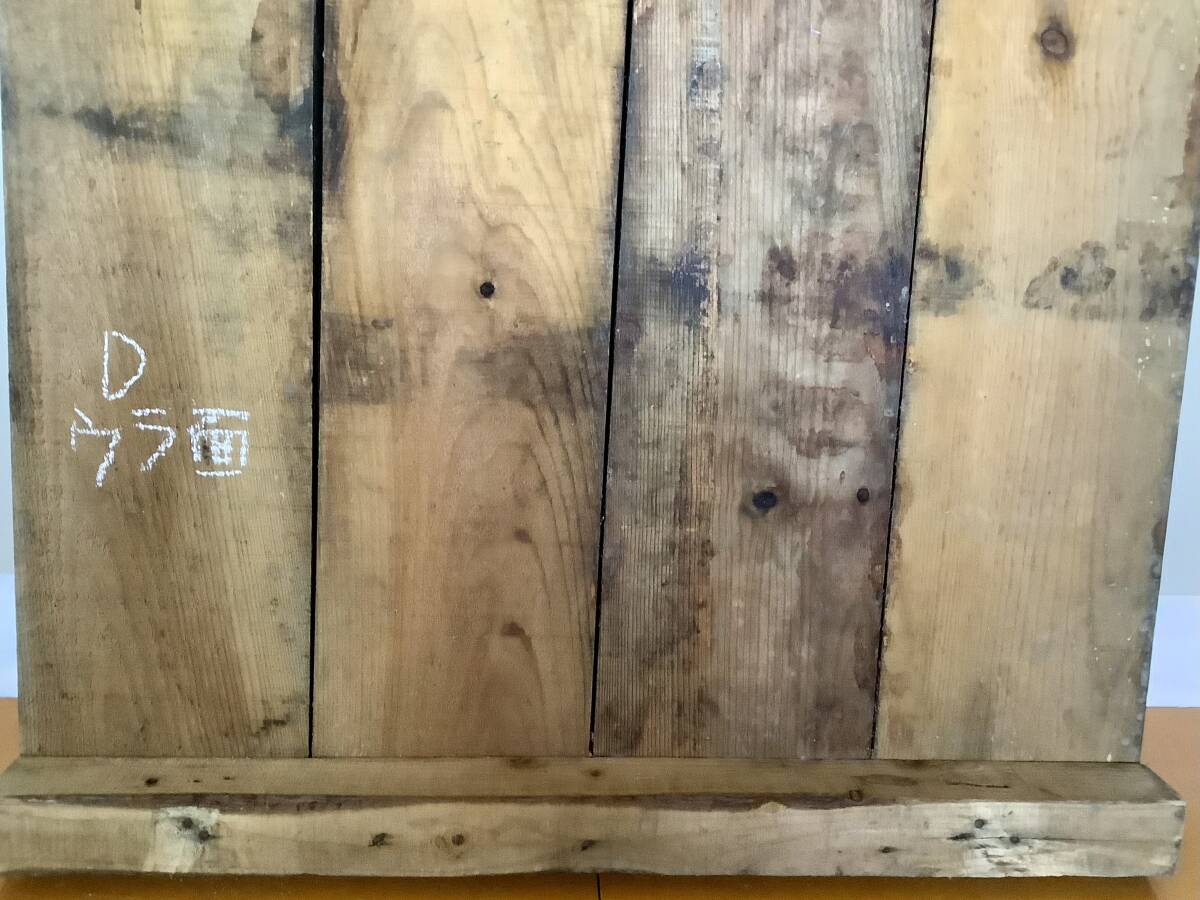 ご覧いただいてありがとうございます。昭和の改修の板厚手4枚利用の棚板になります。写真5番汚れを落とすときれいな青森ヒバ年輪模様が浮き出ると思っております。厚手の板4枚が利用されております。古呆けた厚みのある丈夫な古材板材お探しの方しかも強度抜群の青森ヒバであれば最適かと思っております。普通の板材であると古くなってくると材質柔らかくもくなってきます。青森ヒバ材経年変化ほとんど感じられません研磨、切断すると、青森ヒバ匂いを感じることができます。こちら青森ヒバにつきましては、放置期間が30年利用期間が70年こちらに樹令100年として200年近く前?の木材となります。安心して利用できると思います。長さ約80センチ幅は約69センチ約17センチ幅の板4枚で構成されております。厚みは約1.8センチ強。重さ約6.4キロ重さも結構あります、写真で寸法のご確認をお願いします。写真が全てですので慎重にご覧いただきたいと思います。時代によっての汚れなどがあります。説明書に誤りがあったならば、ご容赦のほどをお願い申し上げます。完全を求める方、神経質な方のご入札はご遠慮いただければ幸いです。落札後のクレームは一切お受けできませんのでこれを理解いただける方の御入札をお待ちしております。重ねてのお願いになります。ノークレーム ノーリターンにてお願いいたします。