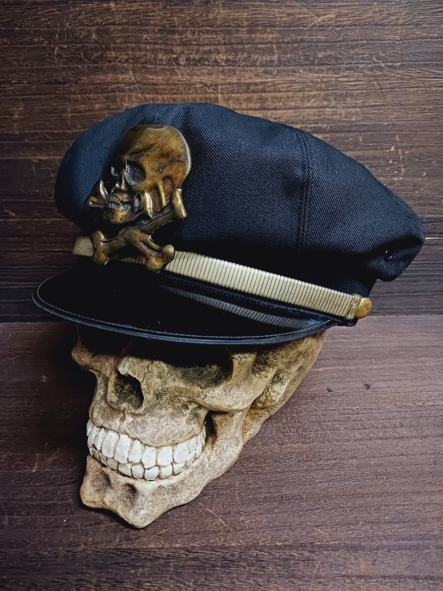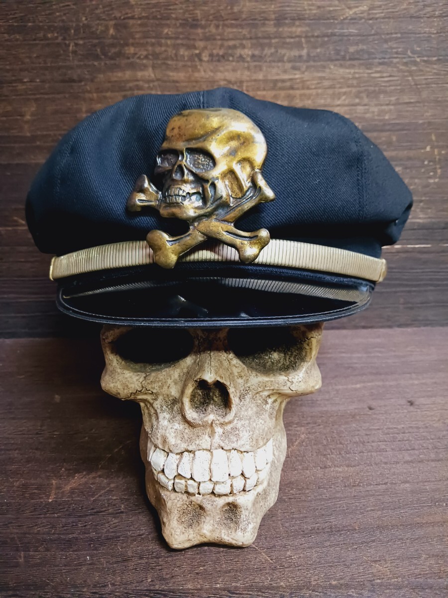 ロングビーチにて購入したモノでブラックボディに真鍮のジャーマンスカル装飾がワイルドで渋い一品です