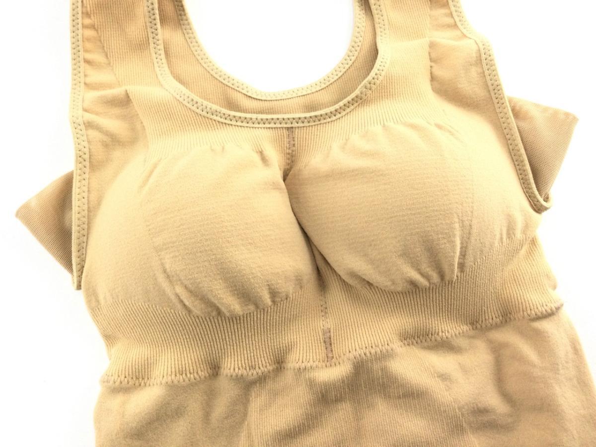 ノンワイヤーでも強圧編みでバストを下から支え脇肉や下腹、骨盤まわりまでしっかりサポート。