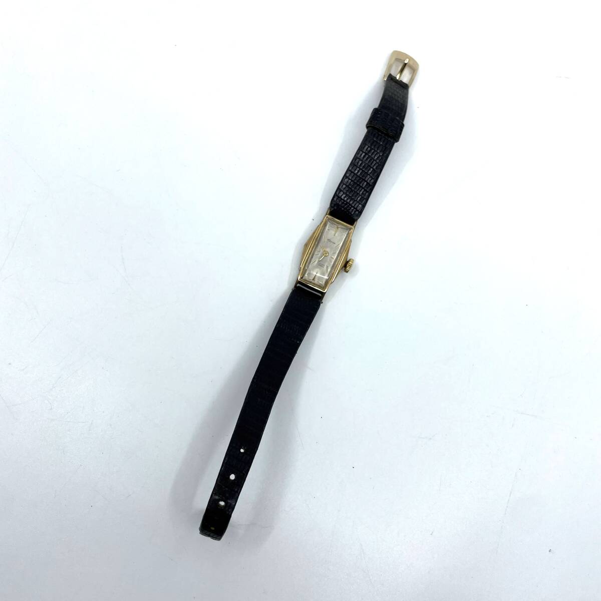 手巻き 腕時計 シルバー文字盤 2針 17石 レクタンギュラー レザーベルト レディース