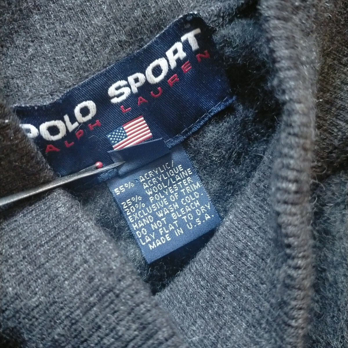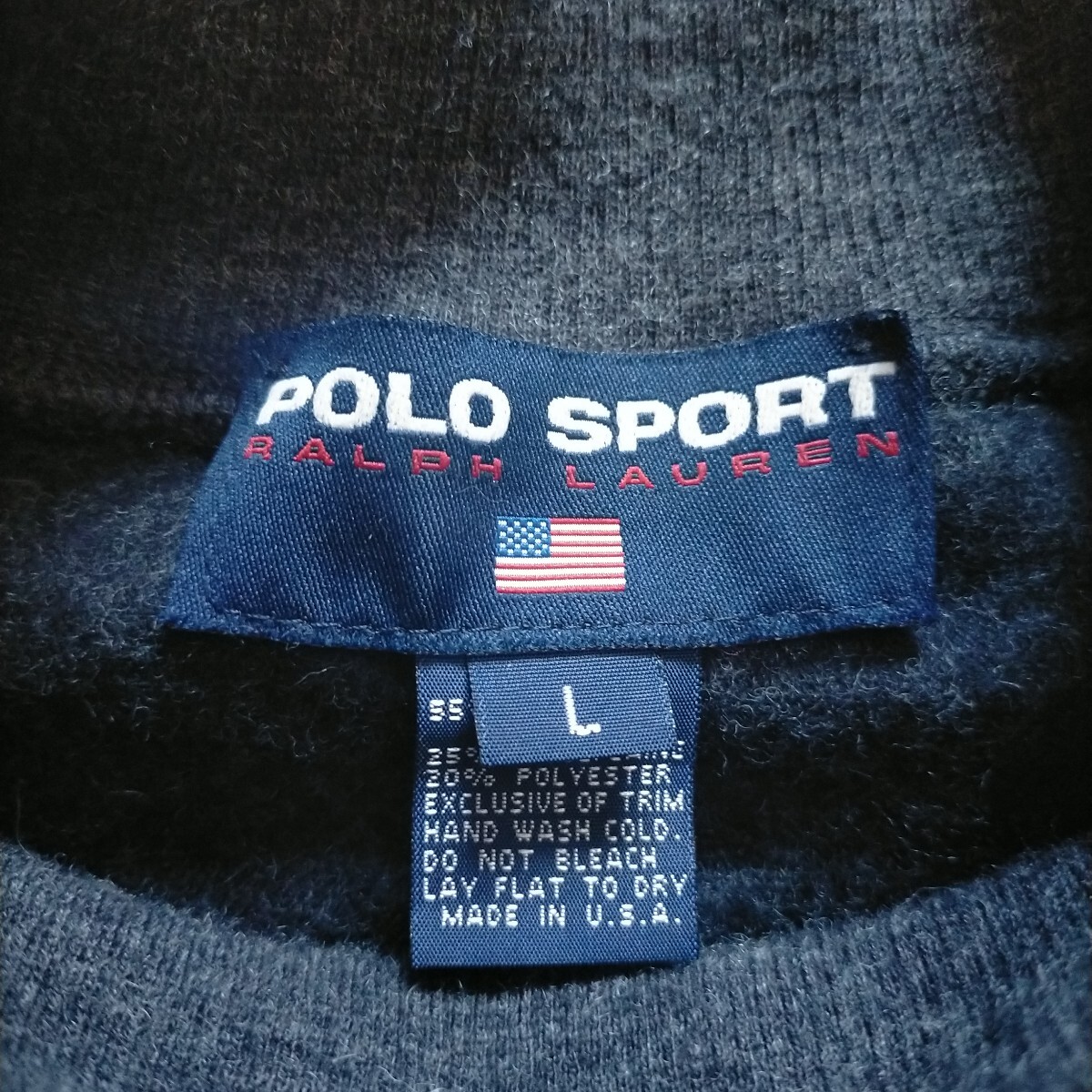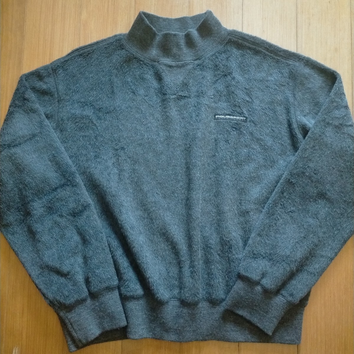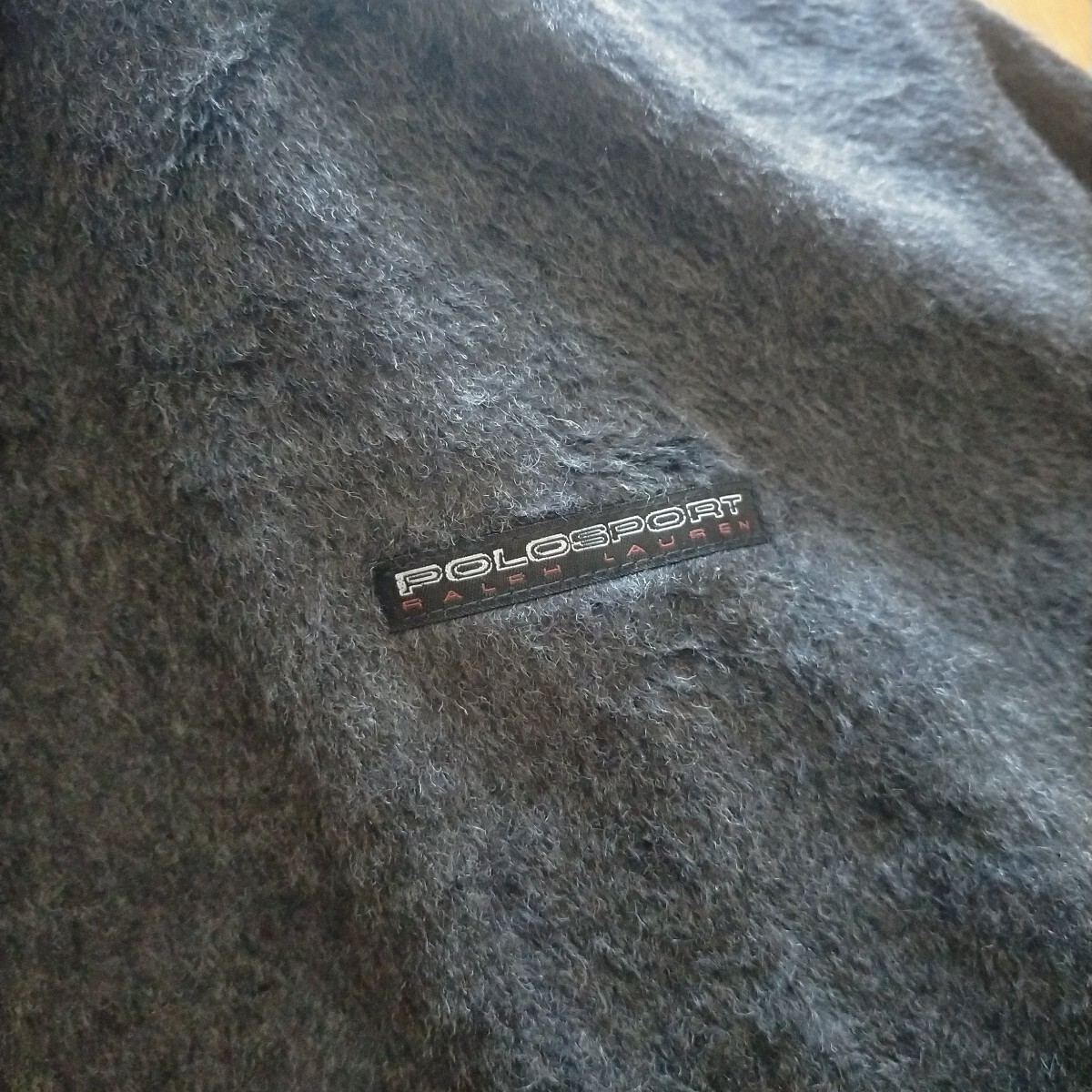 ポロ スポーツ モックネック シャギー ボア ファー モヘア感 ウール スウェット シャツ USA製 ラルフ Vガゼット もこもこ 毛足 サイズL