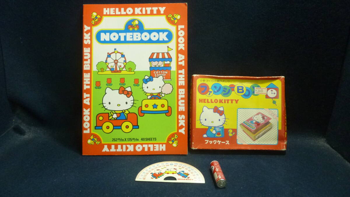 未使用!サンリオ.HELLO KITTY,ファンシーBOX.NOTE.分度器.3点.当時物。