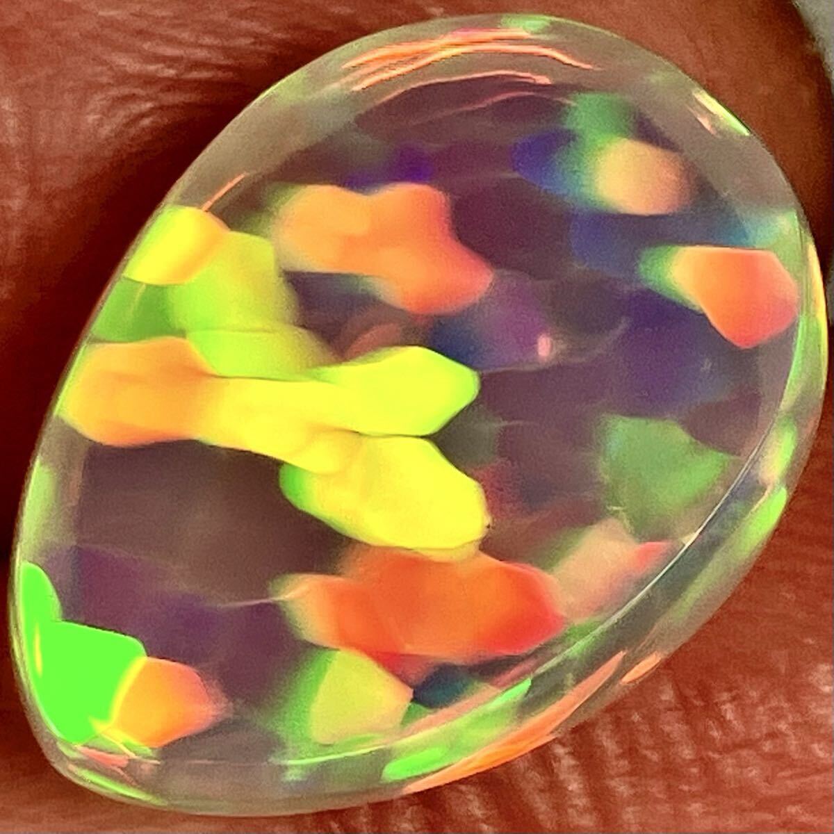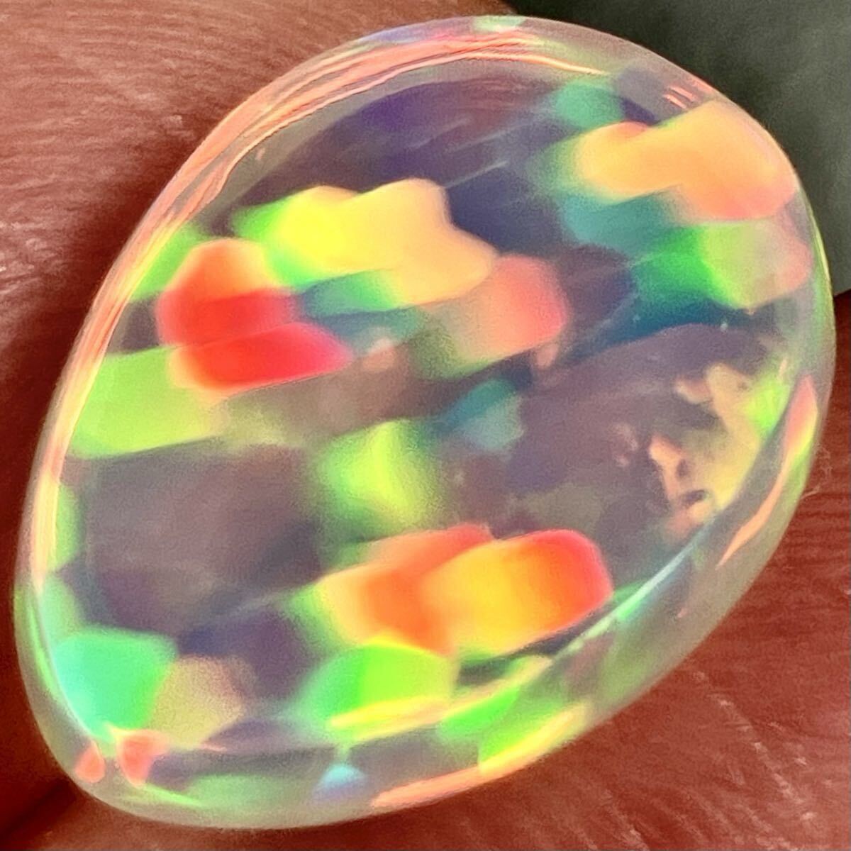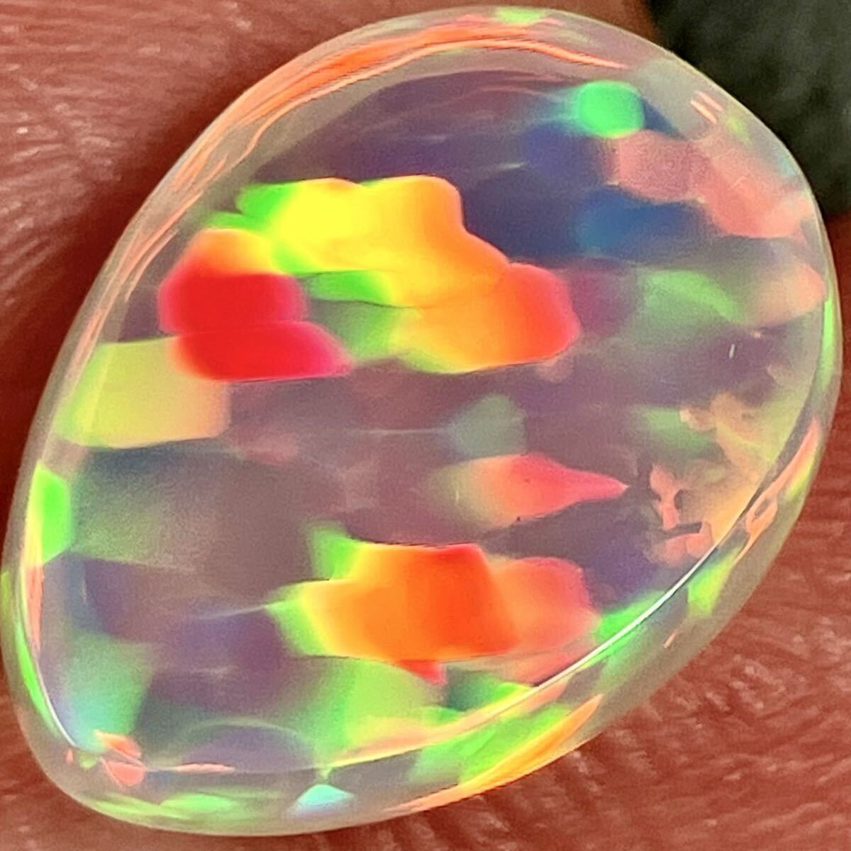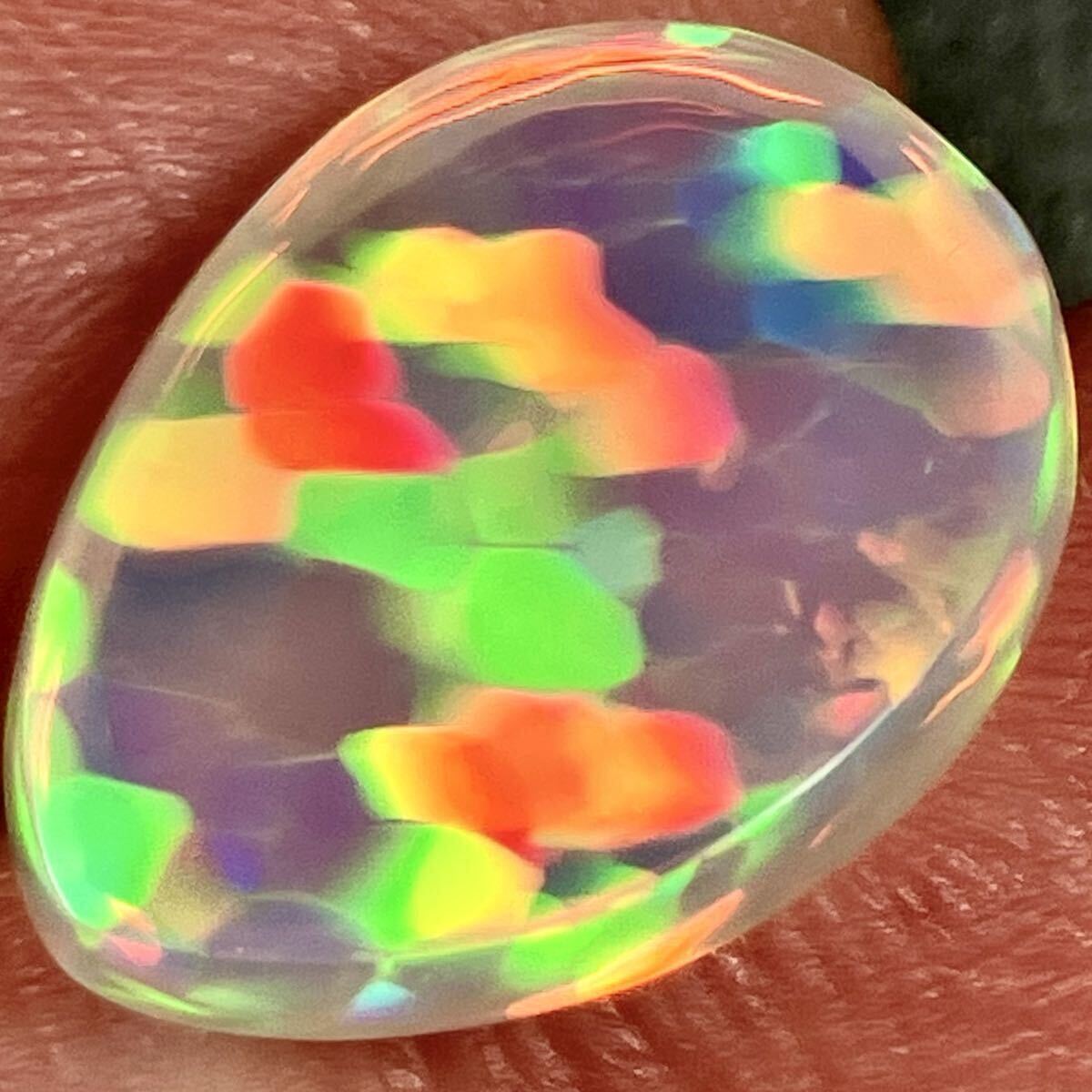 非加熱のノートリートです。こちらのルースは透明なクリスタルに近い半クリスタルのオパールとなっております。また表面はくっきりと美しいハニカムパターンで覆われており、裏面はハニカムパターンとセルが大きく角ばって密集した色斑の、ハニカムの中でも更にレアなモザイクパターンが融合したモザイクハニカムパターンとなっており、大変稀少で珍しいオパールとなっております。画像では本来の遊色の美しさを再現することはできませんので、ぜひ動画をご覧くださいませ。 | ||