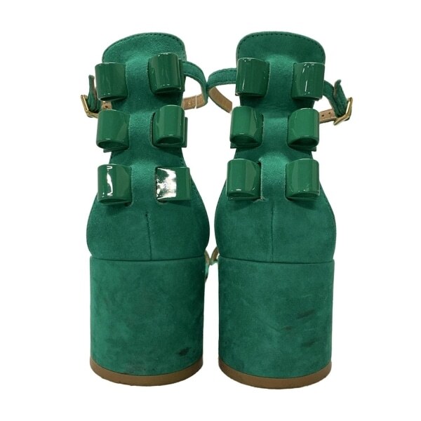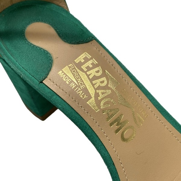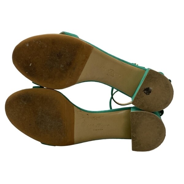 サルバトーレフェラガモ FERRAGAMO/SalvatoreFerragamo サンダル 6 1/2 C - グリーン レディース リボン 靴