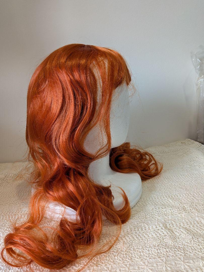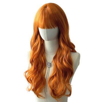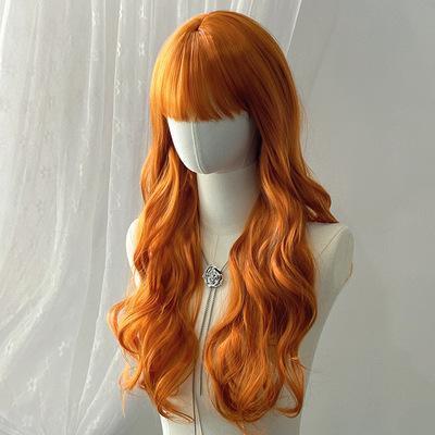 華やかなオレンジカラーが目を引くロングウェーブウィッグ。