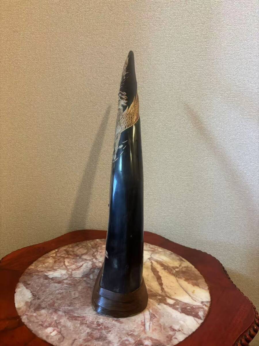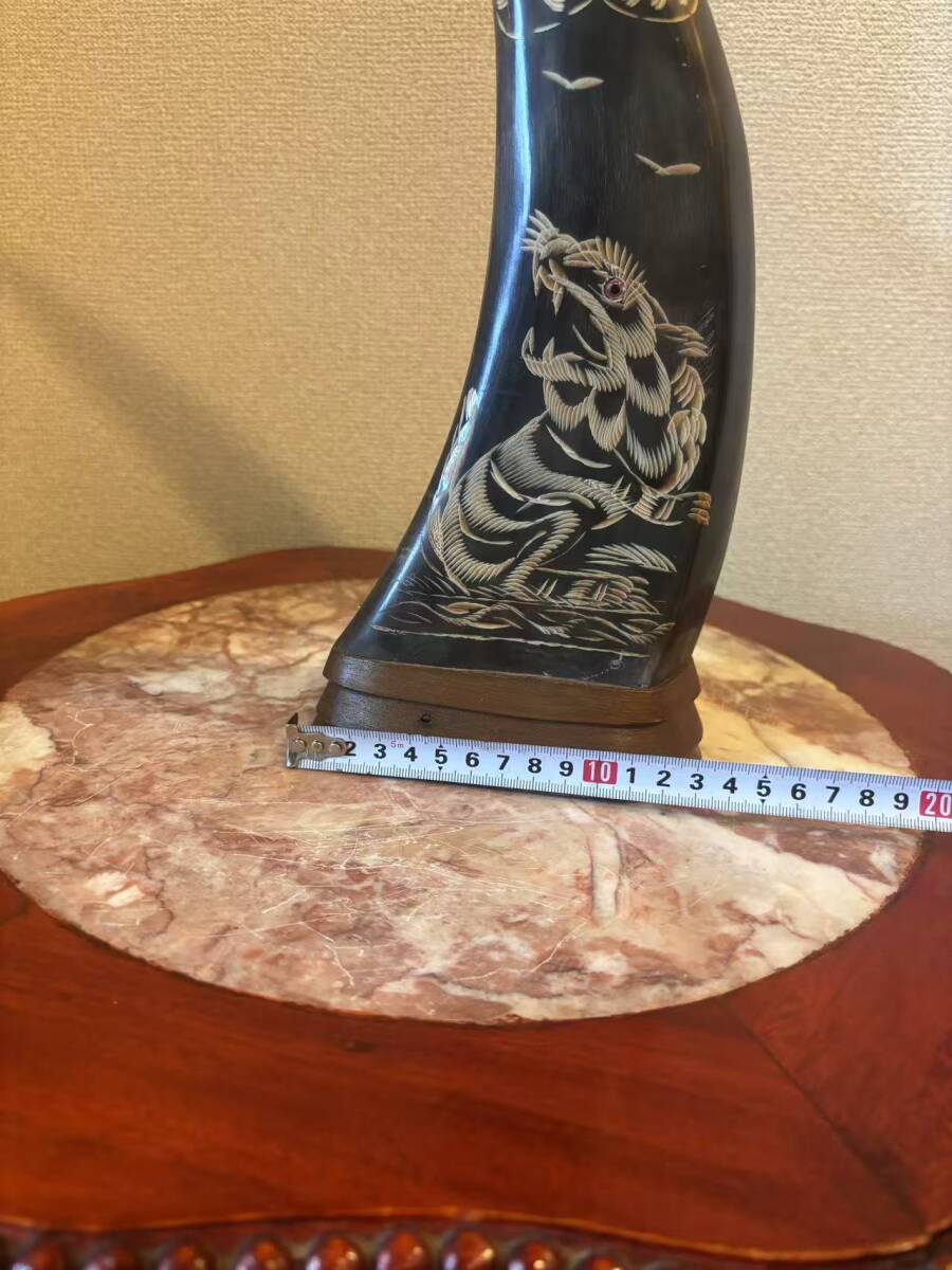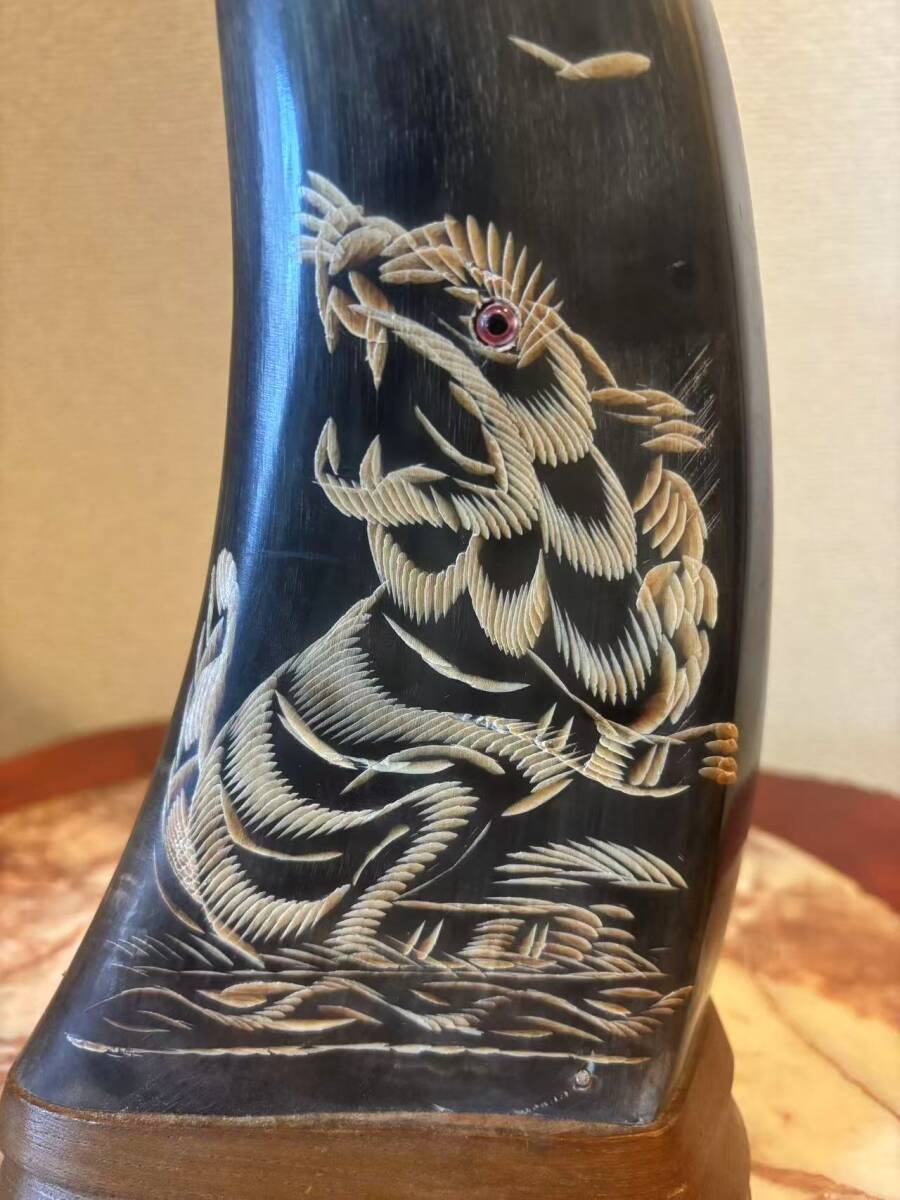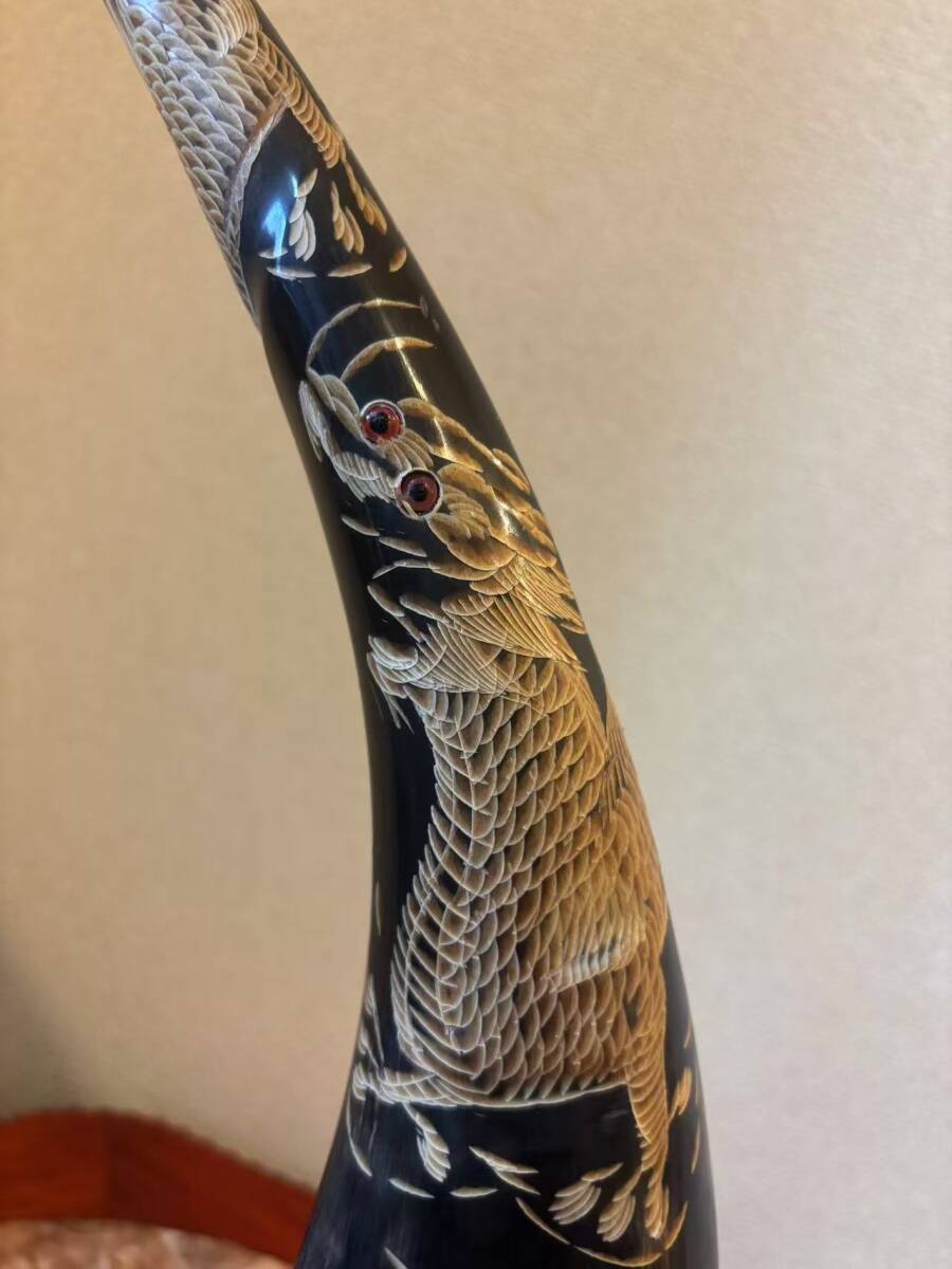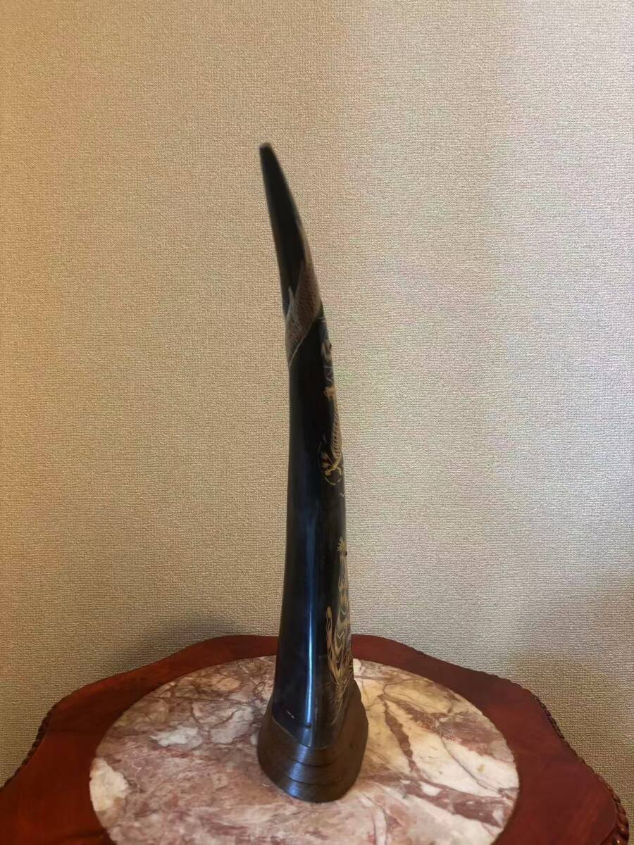 水牛の角 角 インテリア 置物 飾り 龍虎彫刻 ツノ 縁起物 骨董品