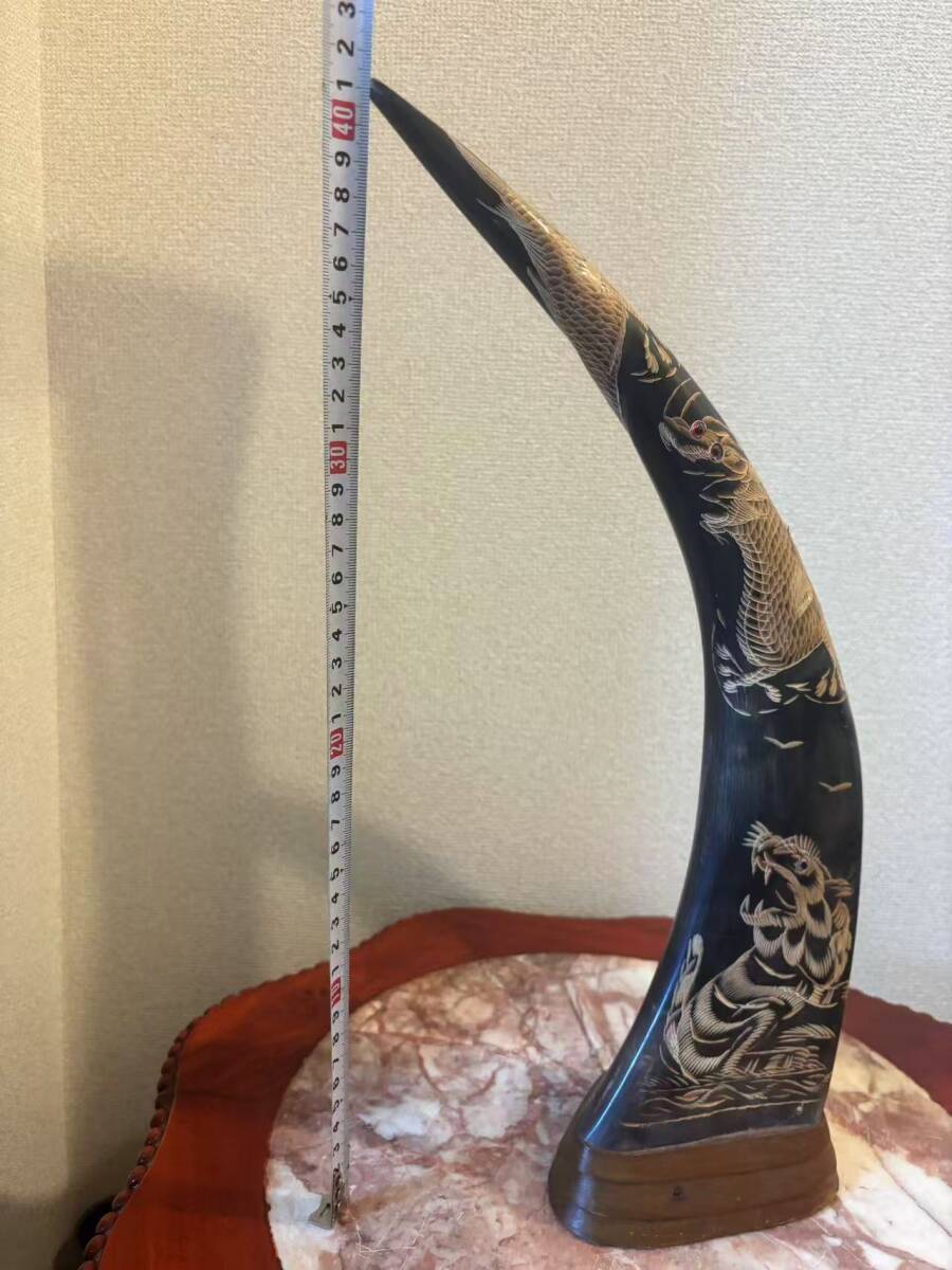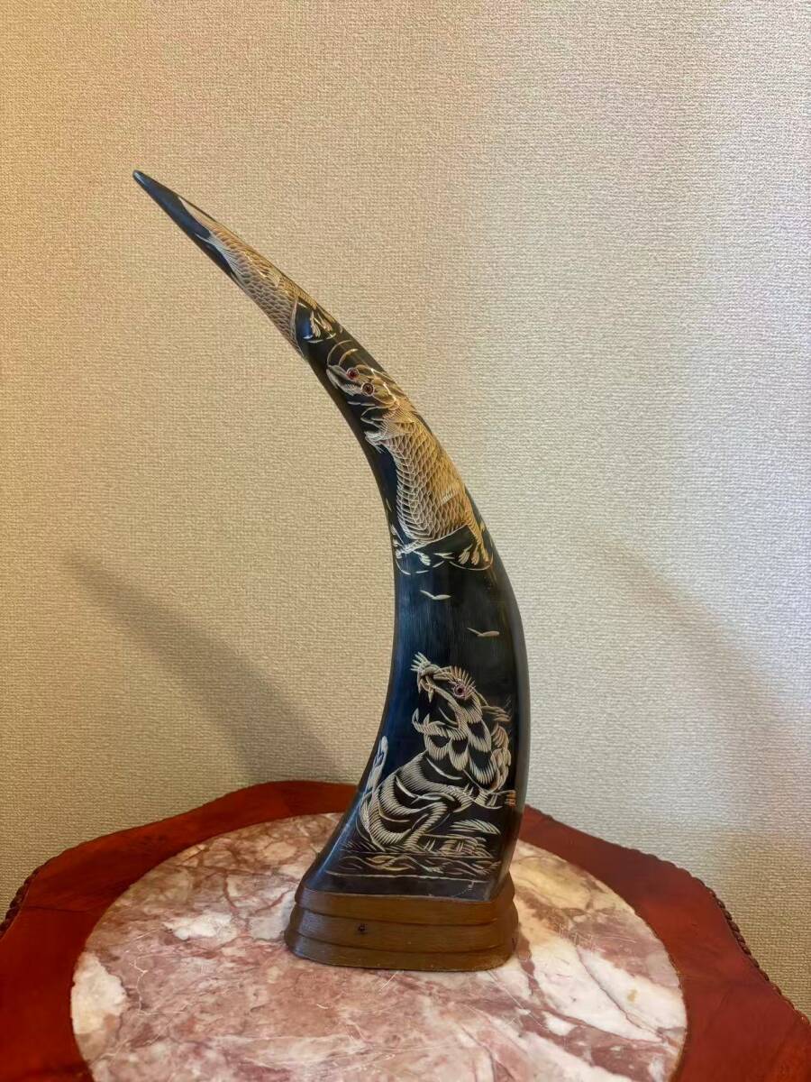 水牛の角 角 インテリア 置物 飾り 龍虎彫刻 ツノ 縁起物 骨董品