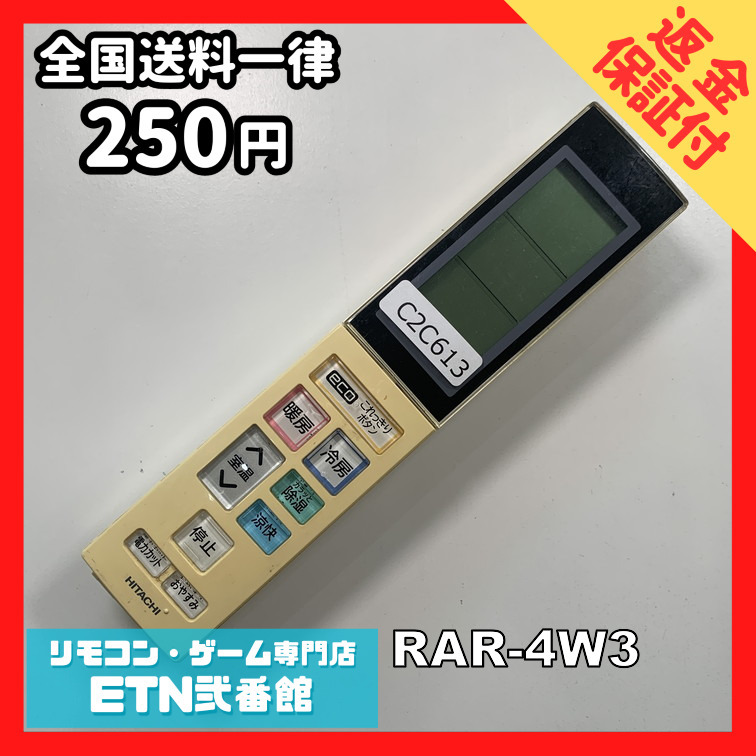 C2C613 【送料250円】エアコン リモコン / 日立 ヒタチ HITACHI RAR-4W3 冷房 暖房 動作確認済み★即発送★