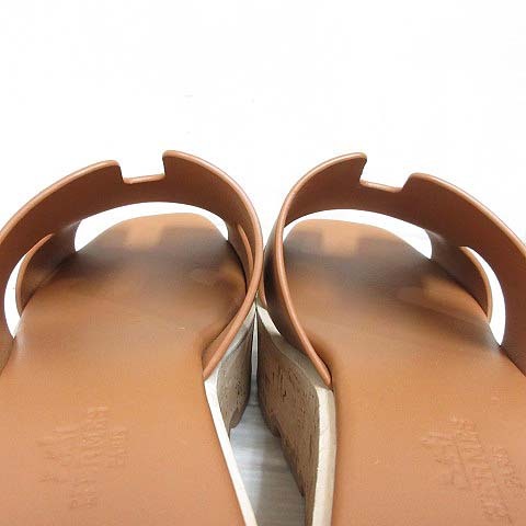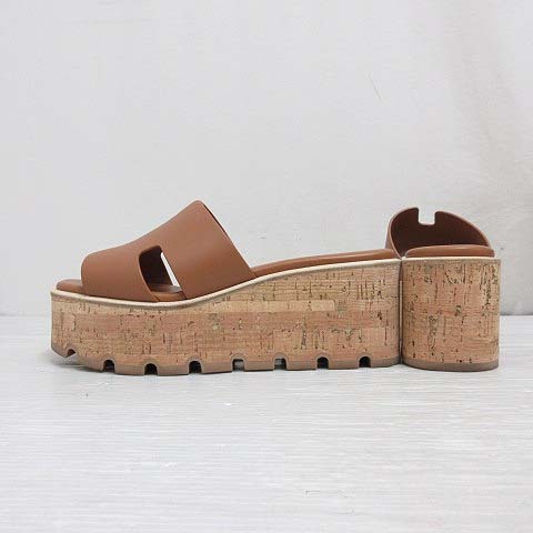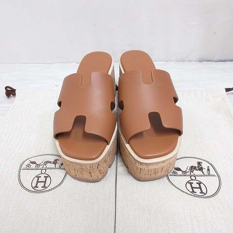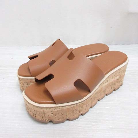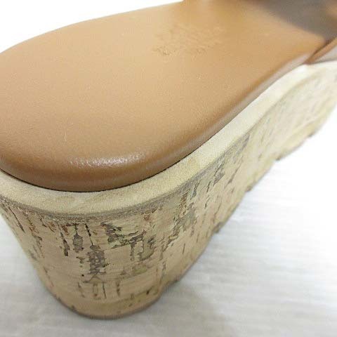 エルメス HERMES 極美品 EZE エズ 30 サンダル レザー 厚底 プラットフォーム コルクソール 36 23cm相当 ブラウン 茶 シューズ 靴 ☆AA★