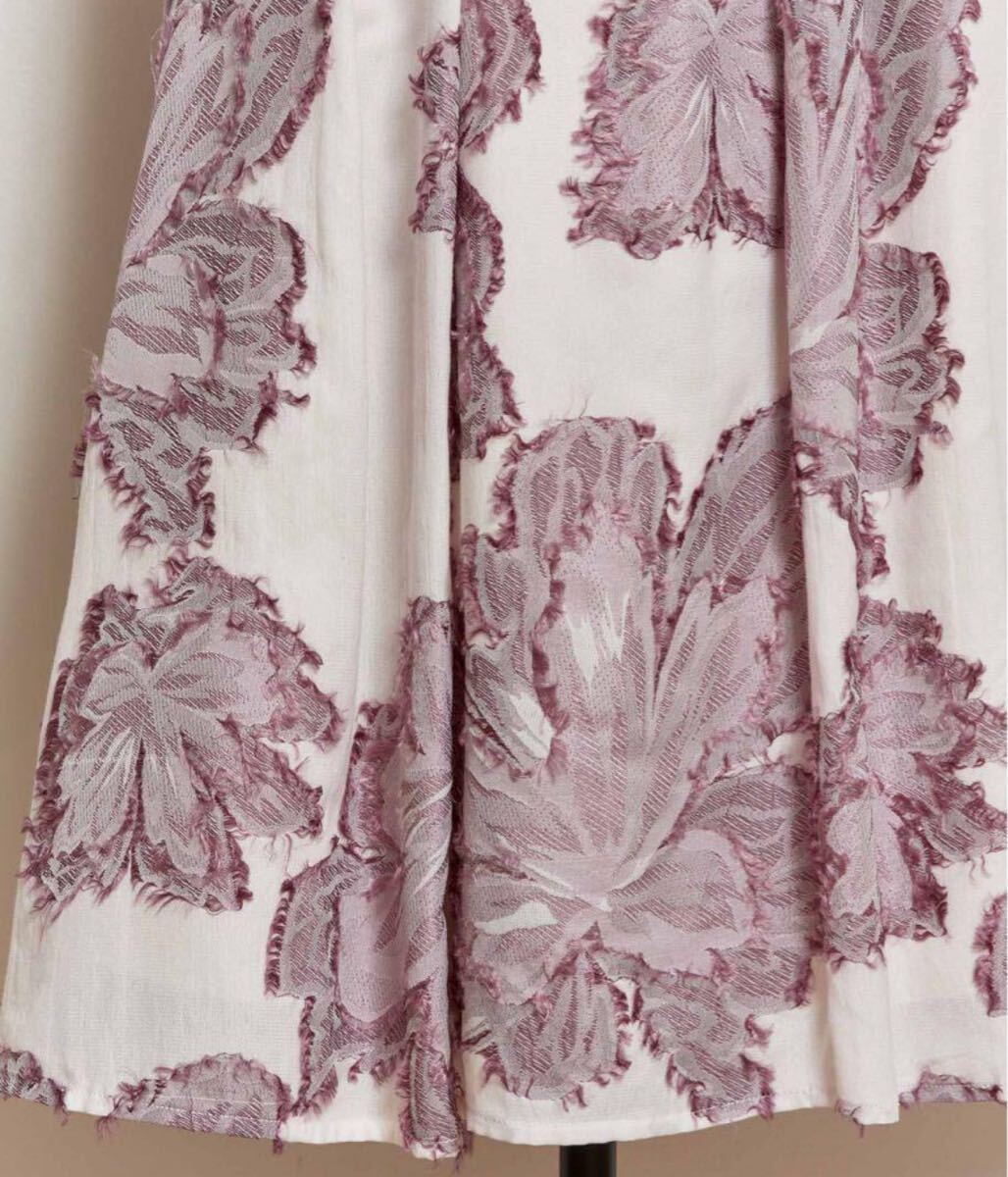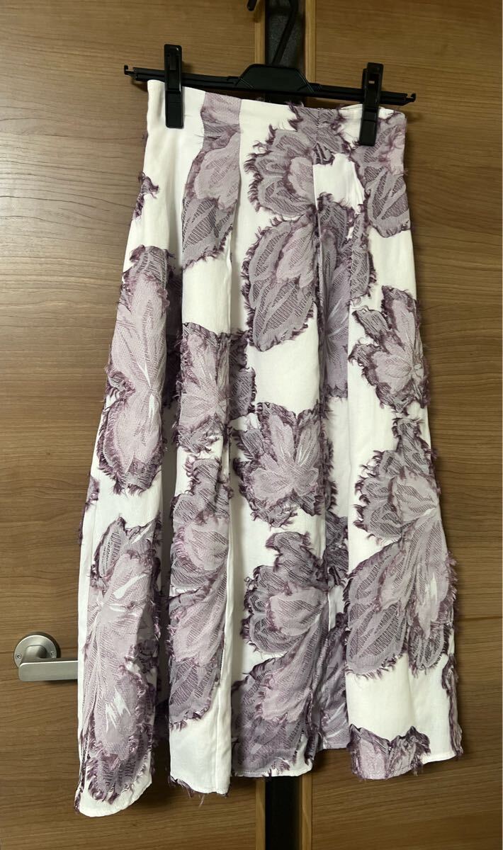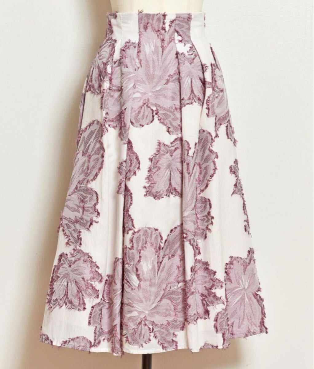 Noela カットジャガードスカート 1万6500円のお品 スタイリスト私物 美人百花掲載品でとても人気のお品です 華やかなジャガード刺繍が可愛いスカートで、オールシーズンはいていただけます サイズSSから細身M前後くらいの方に ウエストの後ろはゴム入りです ウエスト63-71丈79センチくらい 素材:綿35%ポリエステル33%レーヨン32%裏地ポリエステ100% カラー:ピンク×ホワイト 2回短時間着用のみのとてもキレイなお品です ホームクリーニング済み
