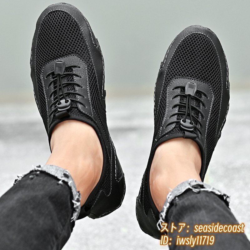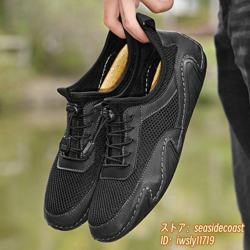 入手困難★メンズシューズ 牛革ドライビングシューズ登山靴 運動靴 本革レザー ランニング ウォーキング 春夏 秋靴 通気性 ブラック 26.0cm