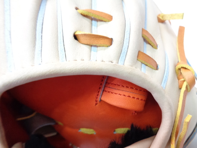 【MRホルダー】中指から小指への紐を締めることでよりタイトに。手とグラブがより一体となることで、操作性が向上。