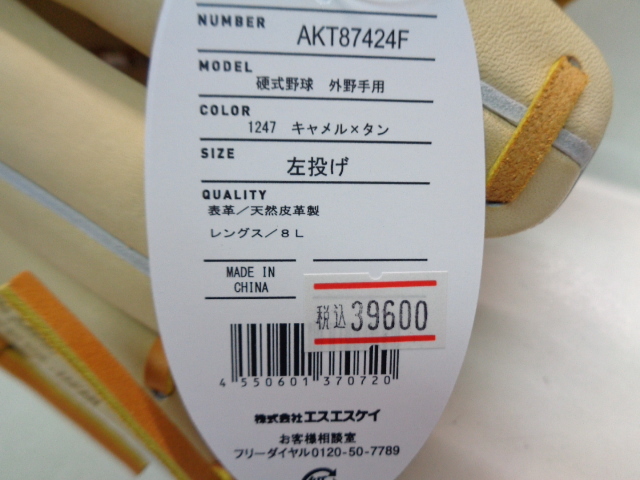 SSK AKT87424F 硬式左投げ外野手用グラブ キャメル エスエスケイ プロエッジ アドヴァンスシリーズ 限定品 新品