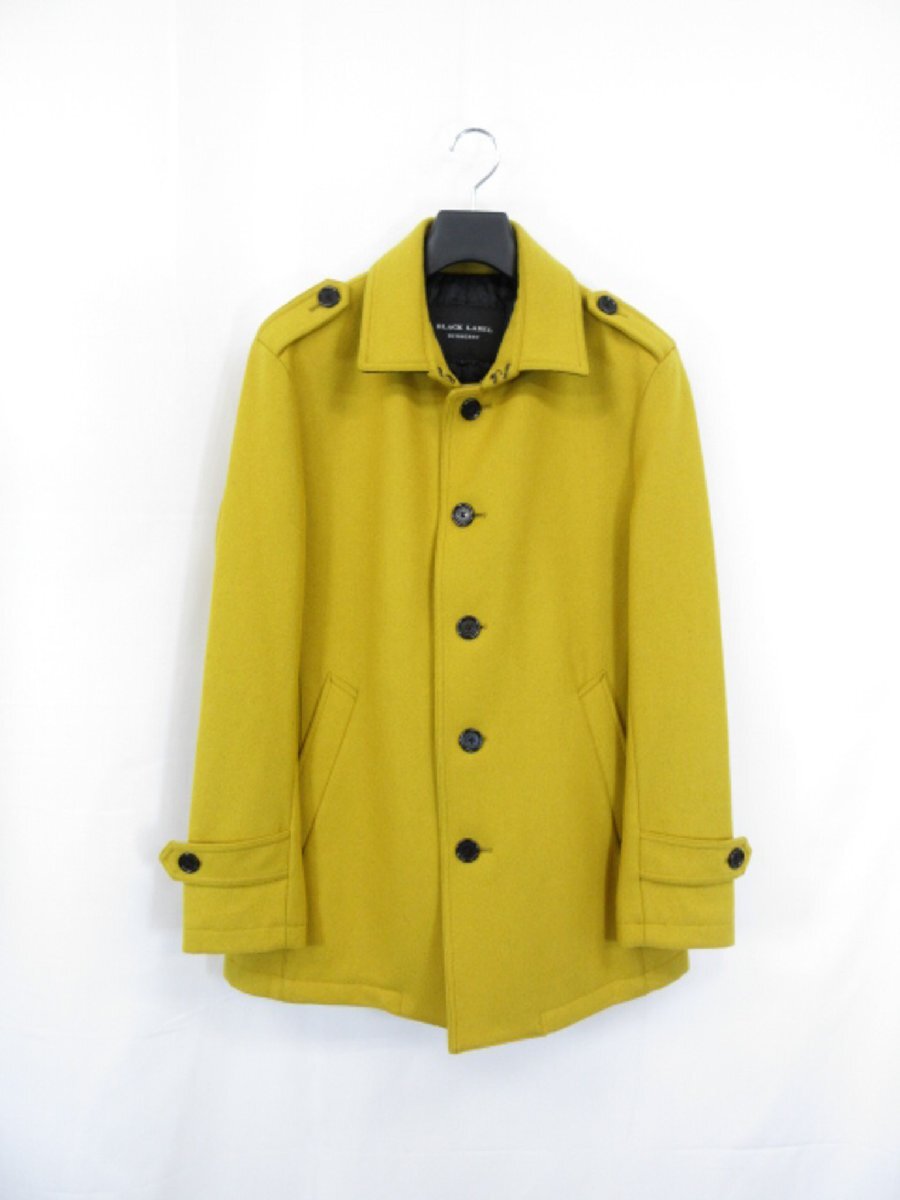 超美品【バーバリーブラックレーベル】D1B60-810-65 中綿入りキルティング裏地 ハーフ丈 ウールメルトンコート(メンズ) L 黄系◇17MW4015◇