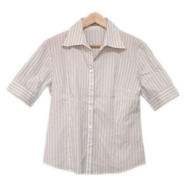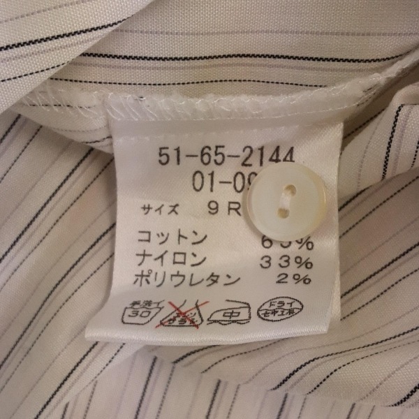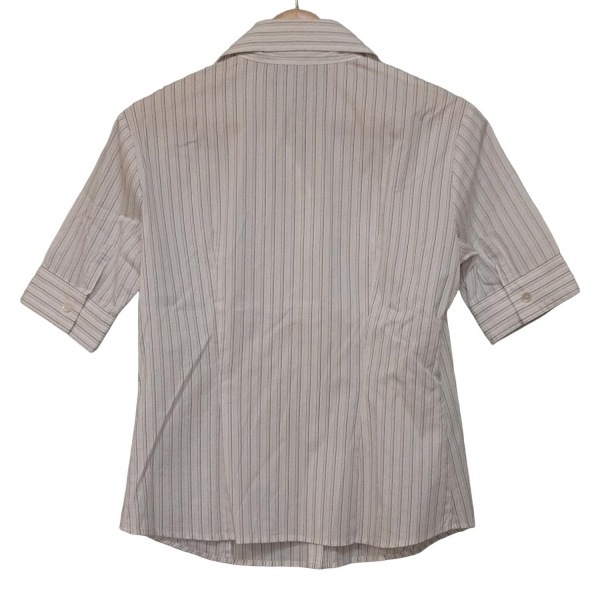 ニューヨーカー NEW YORKER 半袖シャツブラウス サイズ9R - 白×黒×ライトパープル レディース ストライプ 美品 トップス
