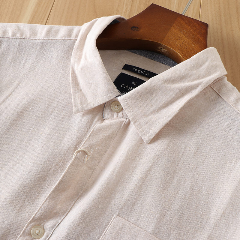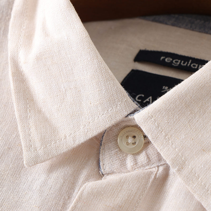 Y6300-2XL ベージュ 新品 長袖シャツ ボタンダウン 綿麻 リネン 快適 軽やか 通気 夏秋 形態安定 メンズ ビジネス カジュアル トップス