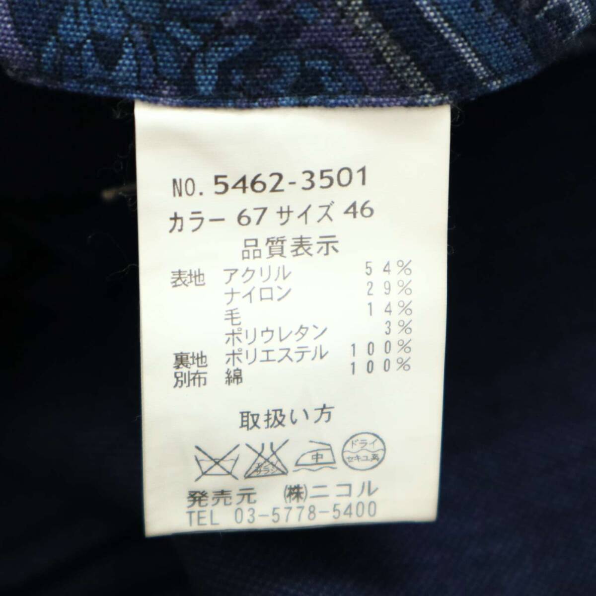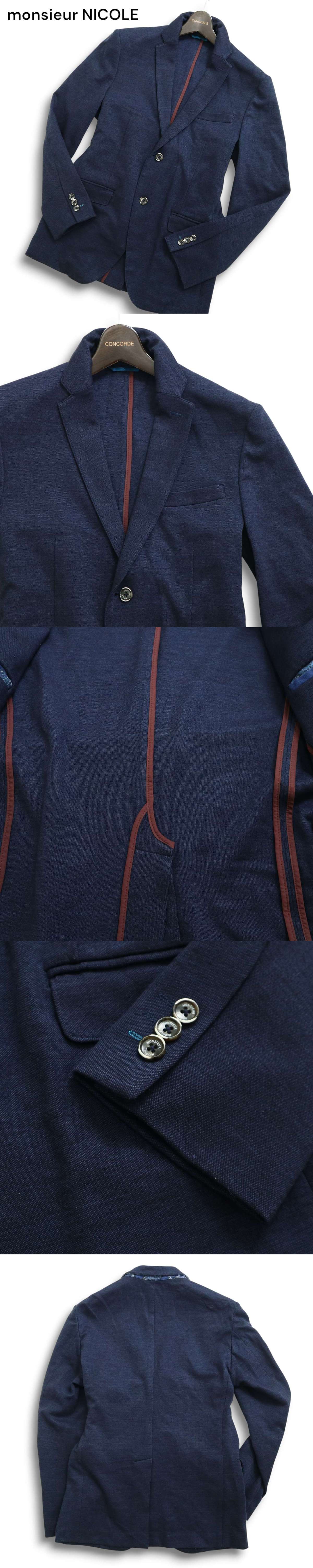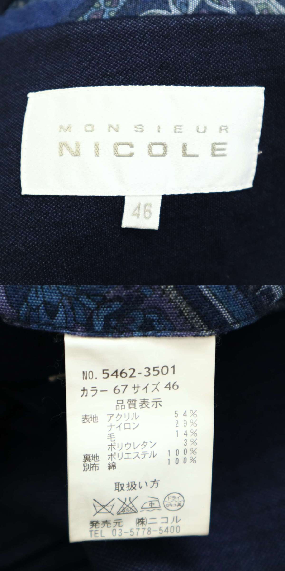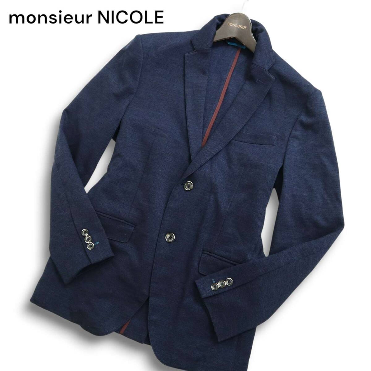 monsieur NICOLE ムッシュ ニコル 秋冬★ ウール混 スリム テーラード ジャケット Sz.46 メンズ 紺 ネイビー