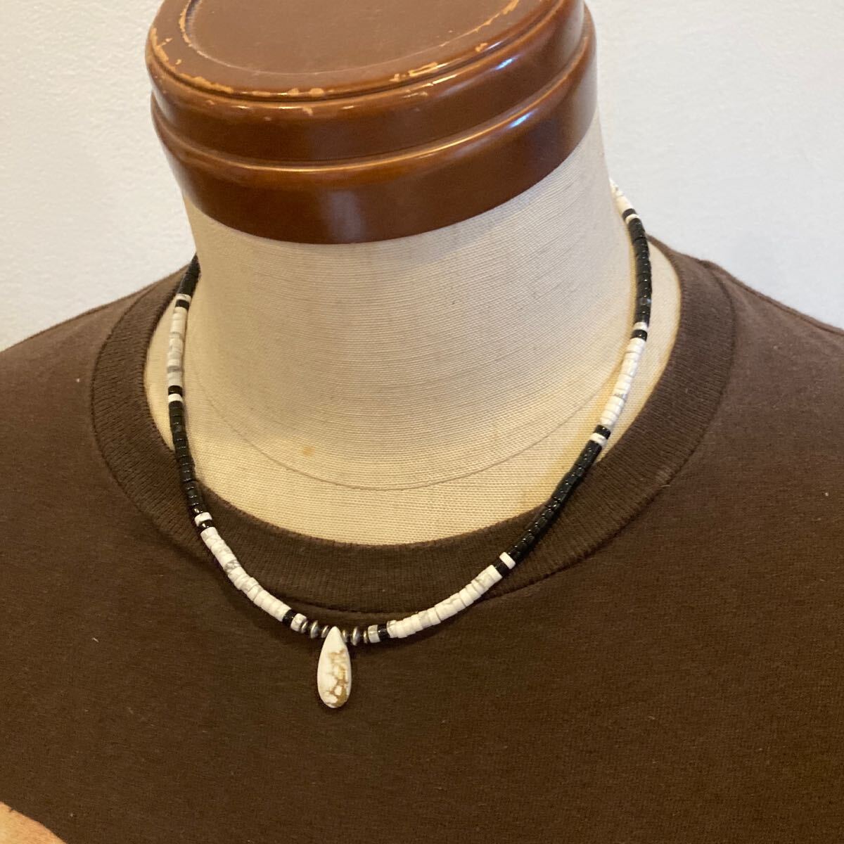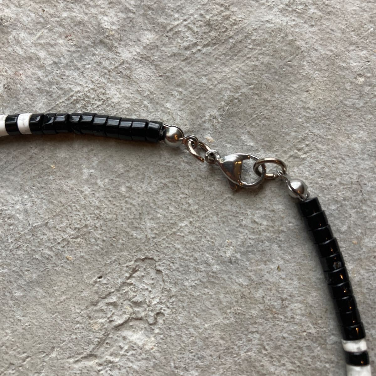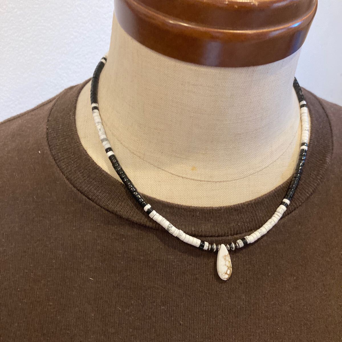 オニキスとハウライトのモノトーンの組み合わせに希少なクレイジーホースを合わせたオリジナルネックレスです。