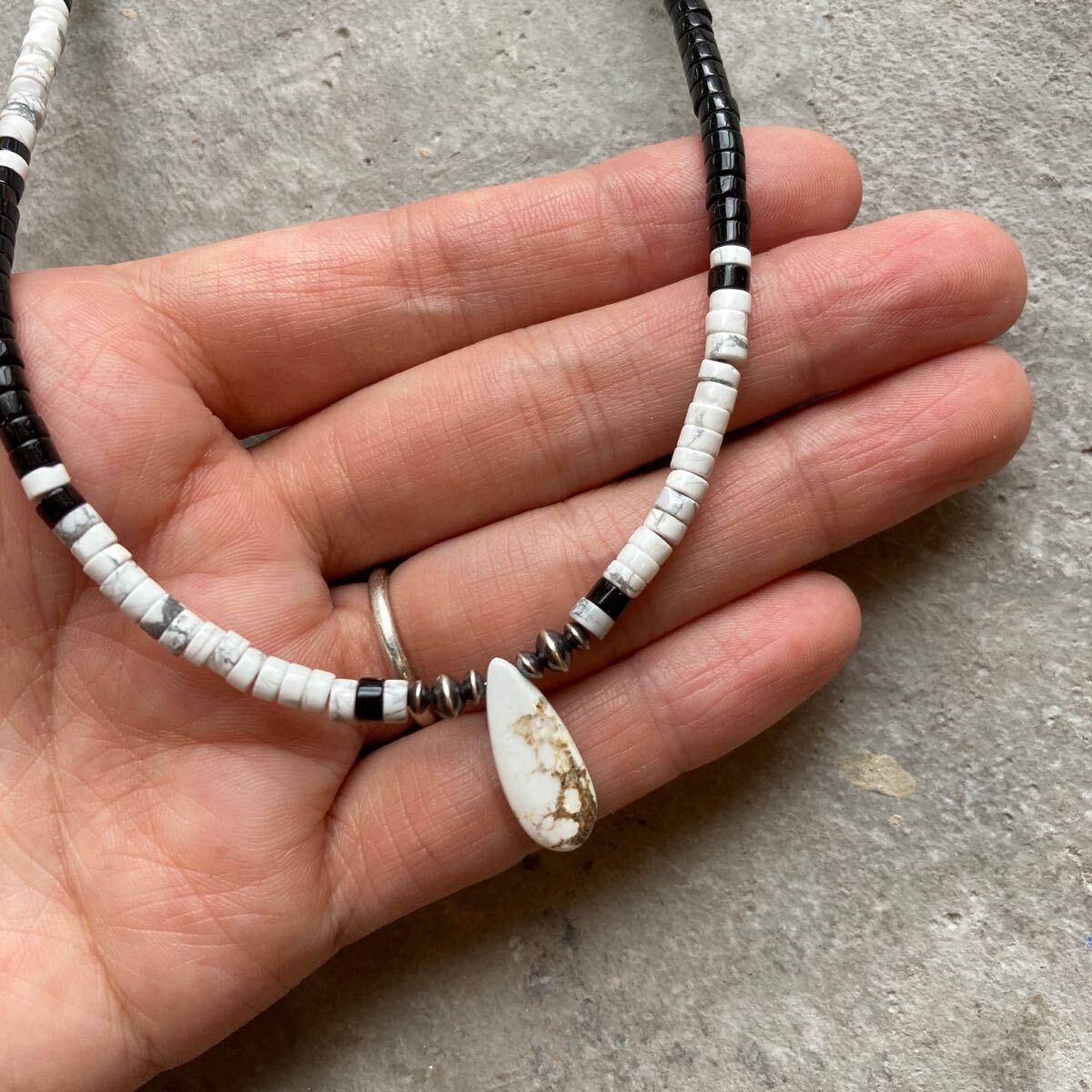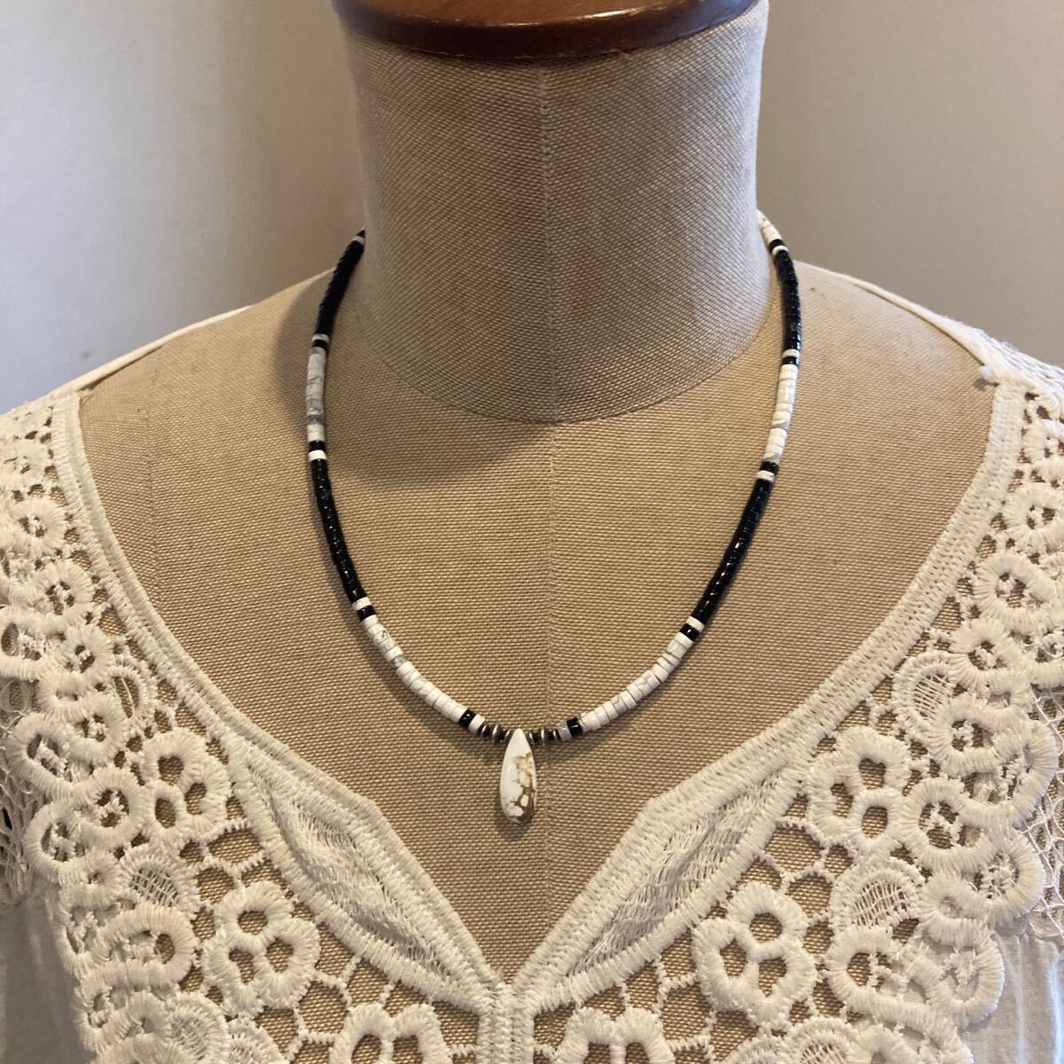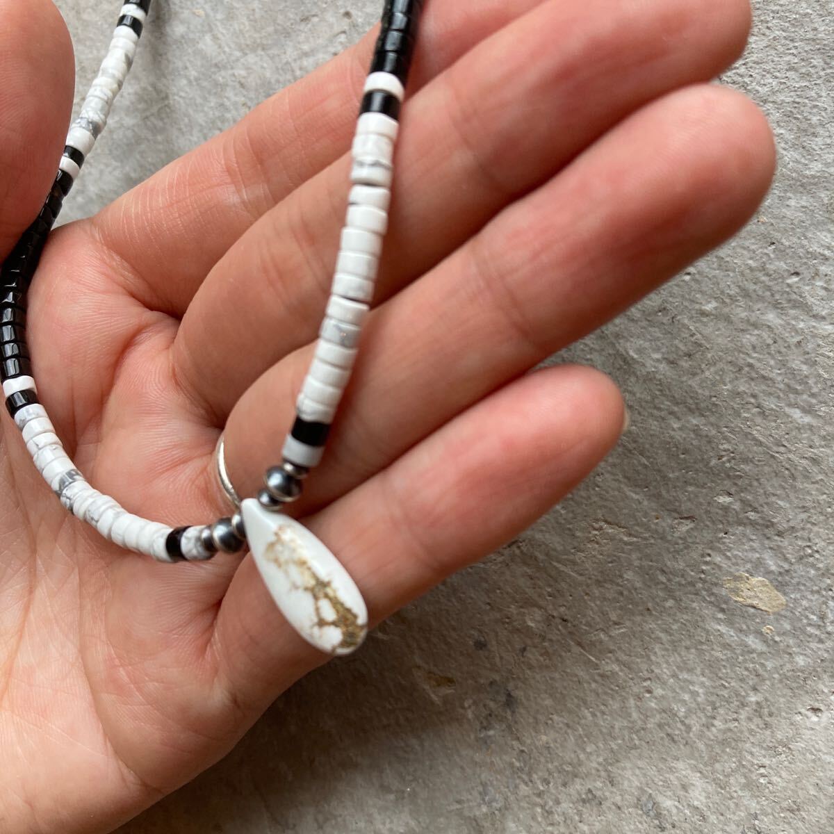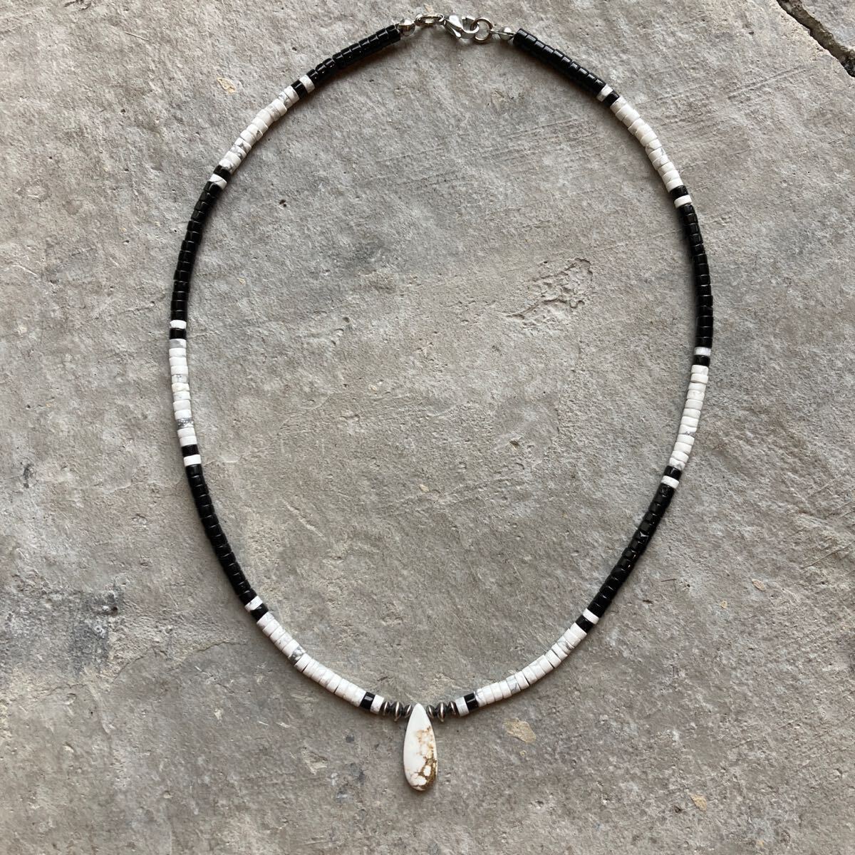 オニキスとハウライトのモノトーンの組み合わせに希少なクレイジーホースを合わせたオリジナルネックレスです。