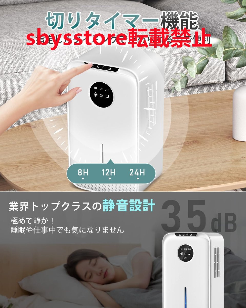 【静音・切タイマー機能・省エネ】静音除湿機、作業時の騷音は約40dB(睡眠モード約35dB)ですので、休みや勉強中でもお悩ませしません。 8時間、12時間、24時間の3段階タイマー機能が搭載されており、設定時間が経過すると自動的に停止して、睡眠中や外出中の時も消し忘れがなく安心です。