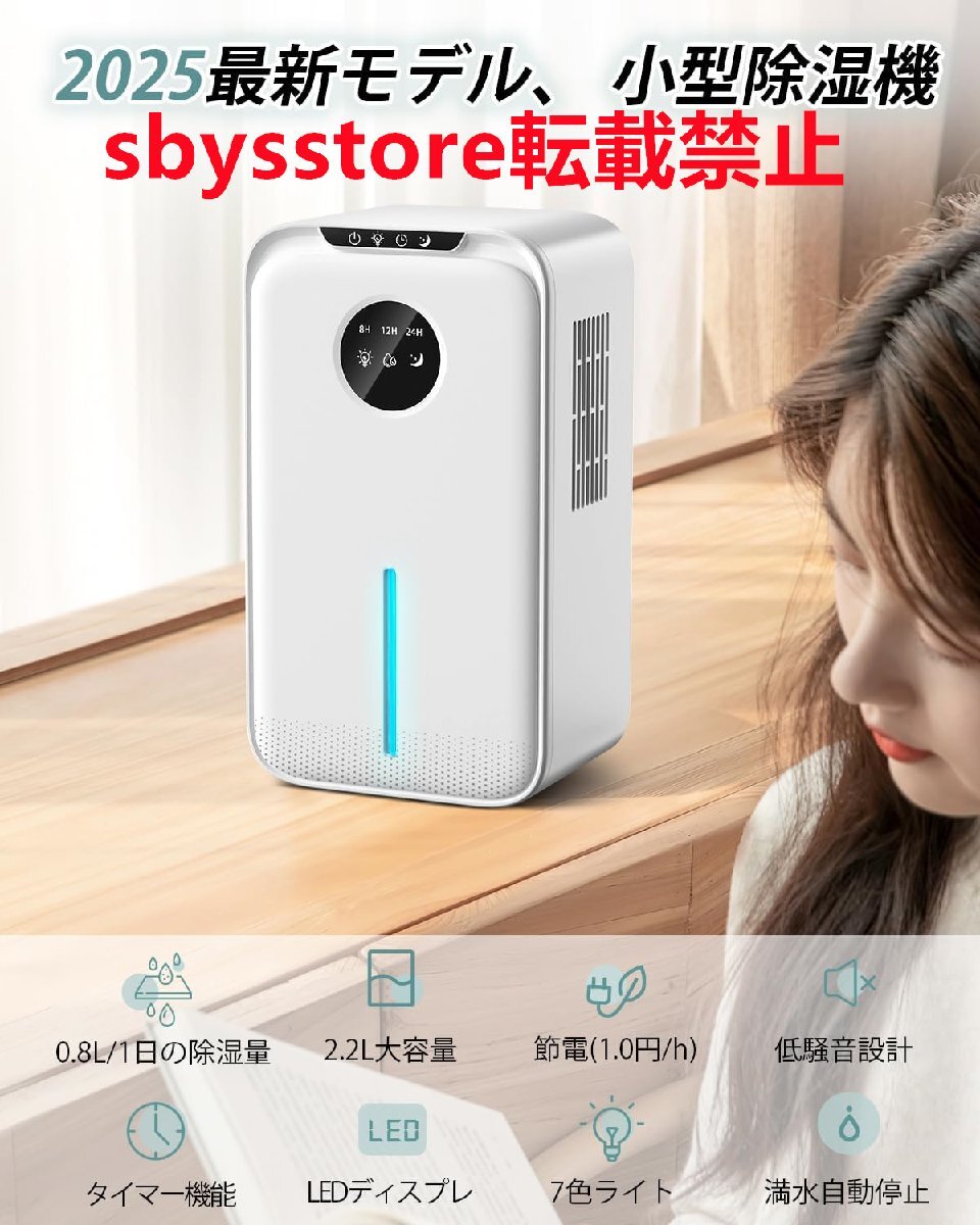 除湿機 小型 除湿器 湿気取り じょしつぎ コンパクト 静音 省工ネ 大容量 2.5L 連続排水 自動停止 タイマー機能 自動除霜機能 スリープ機能