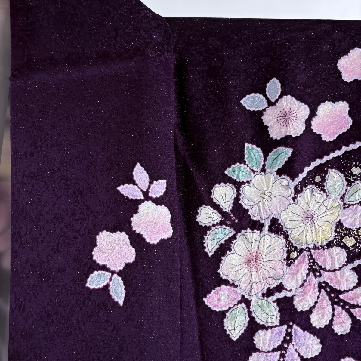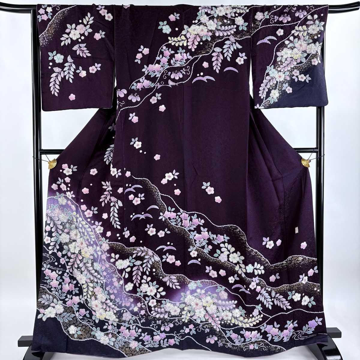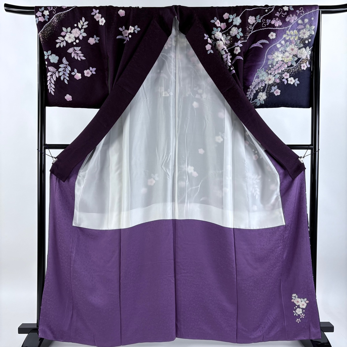 | 訪問着 美品 逸品 徳永憲峯 落款 辻が花 桔梗 金彩 金通し 濃紫 袷 身丈164.5 裄丈66 M 正絹 【中古】 |