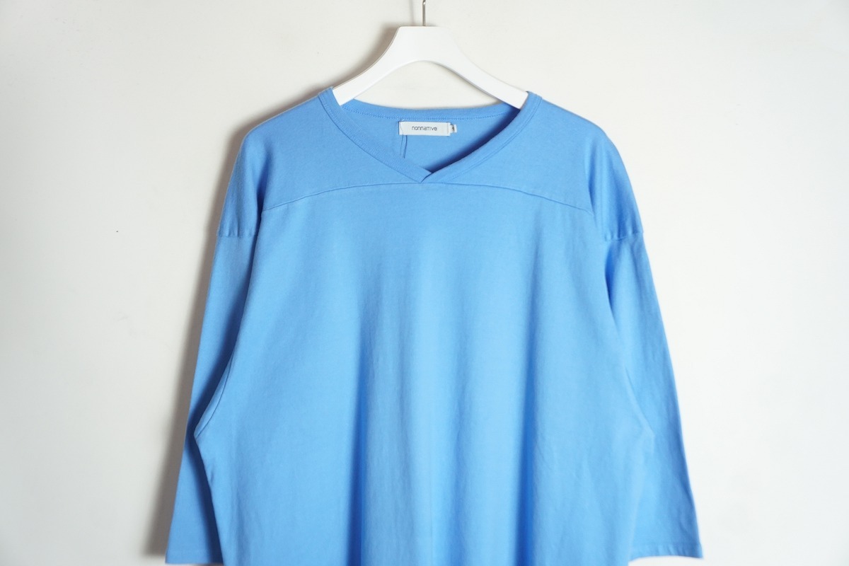25SS nonnative ノンネイティブ COACH Q/S V-NECK TEE COTTON JERSEY OVERDYED NN-C4617 七分袖 Vネック Tシャツ SSM5651 青です。