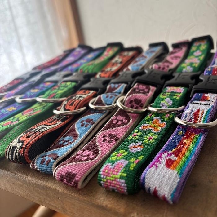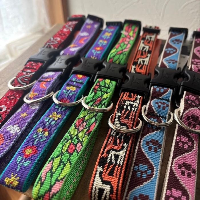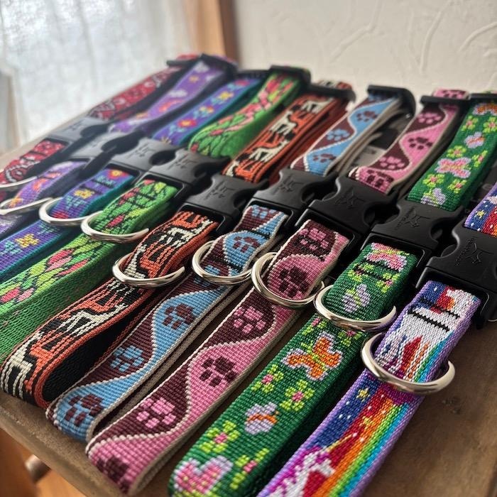 同柄の、サイズ違いの首輪、リード、ハーネス、キーホルダーなどもございます。
