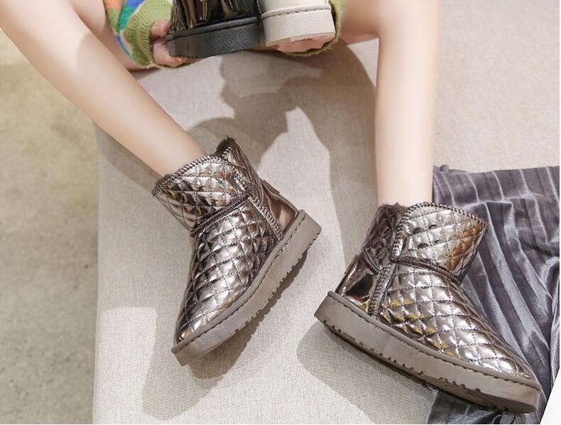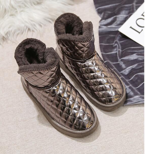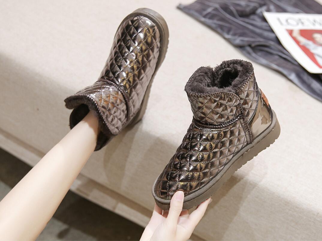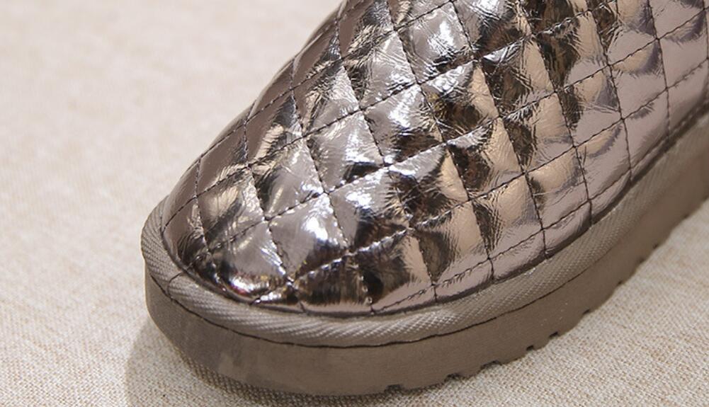 ・エナメル感があってツヤツヤと美しい裏起毛のキルティングブーツ。