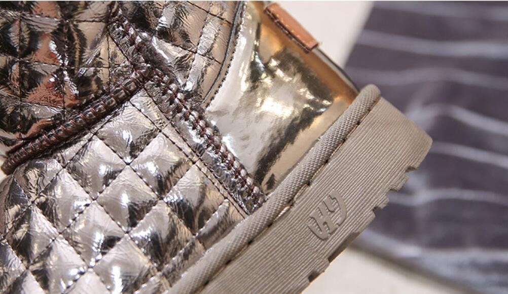 人気品レディース 靴 ショートブーツ キルティング ハイカット 秋冬 フラット 黒 裏起毛 エナメル感 22.5cm(35) シルバーグレー