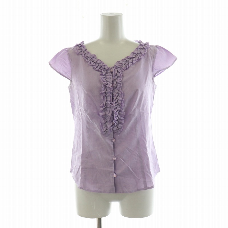 トッカ TOCCA シャツ ブラウス 半袖 フリル Vネック 0 パープル BLTOGA0150 /NQ ■JS レディース