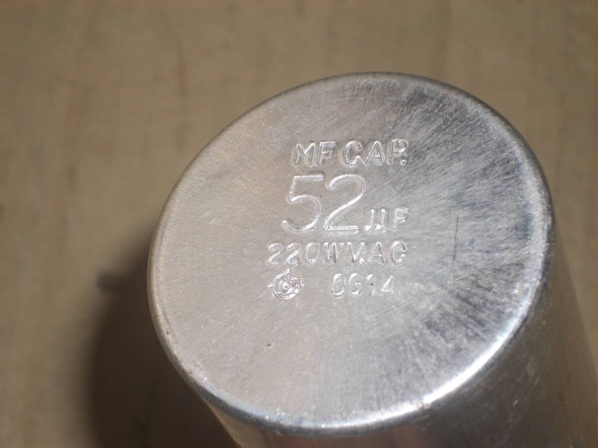 52μファラッド、220WVAC、端子部を除いた大きさ直径40ミリ、長さ115ミリ、容量は確認済みです。