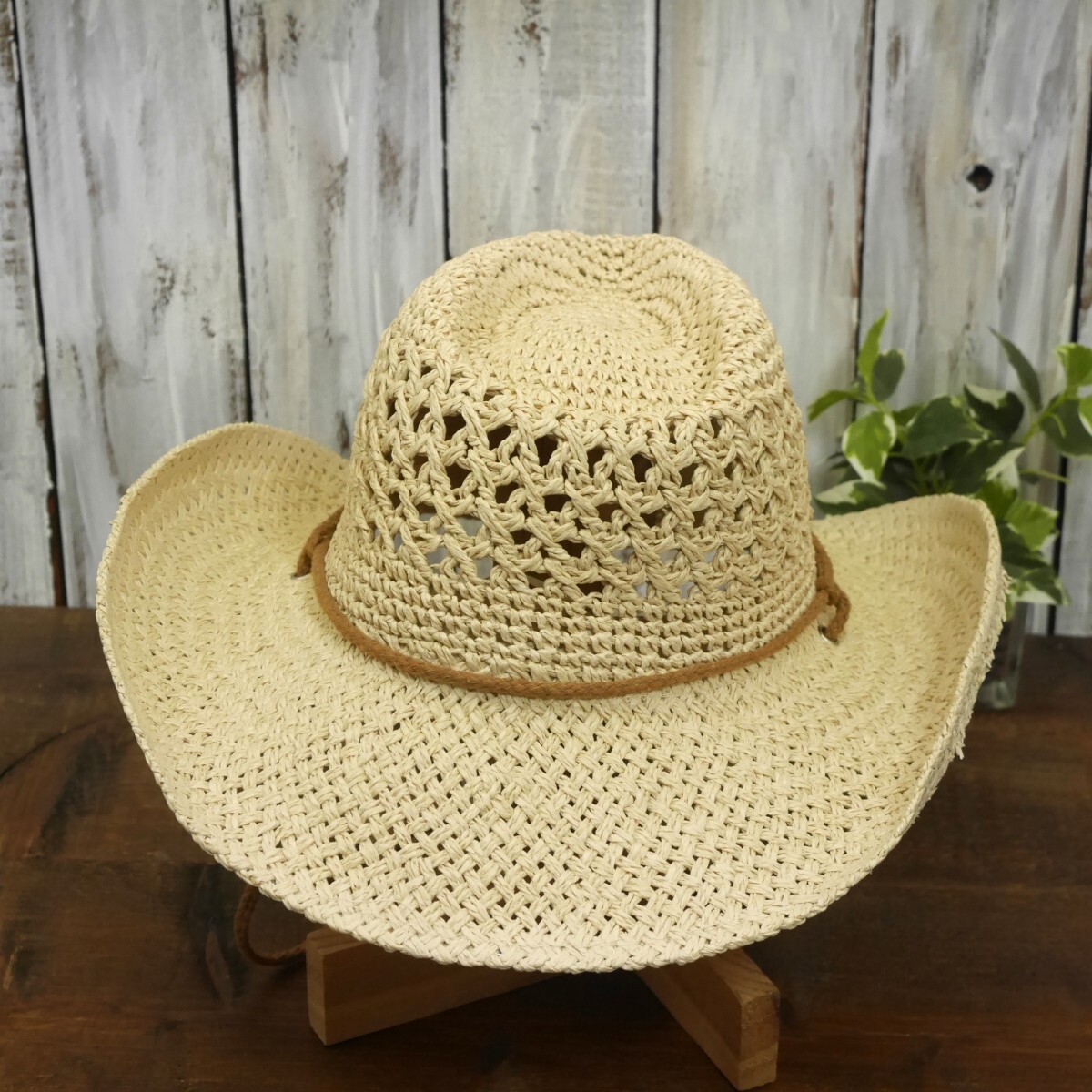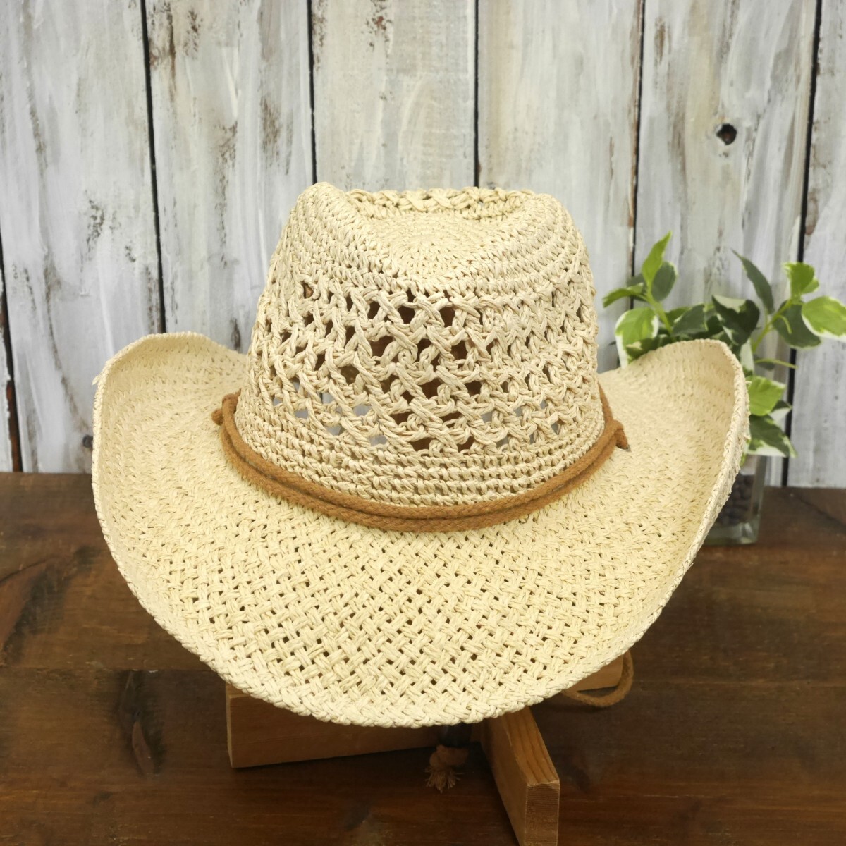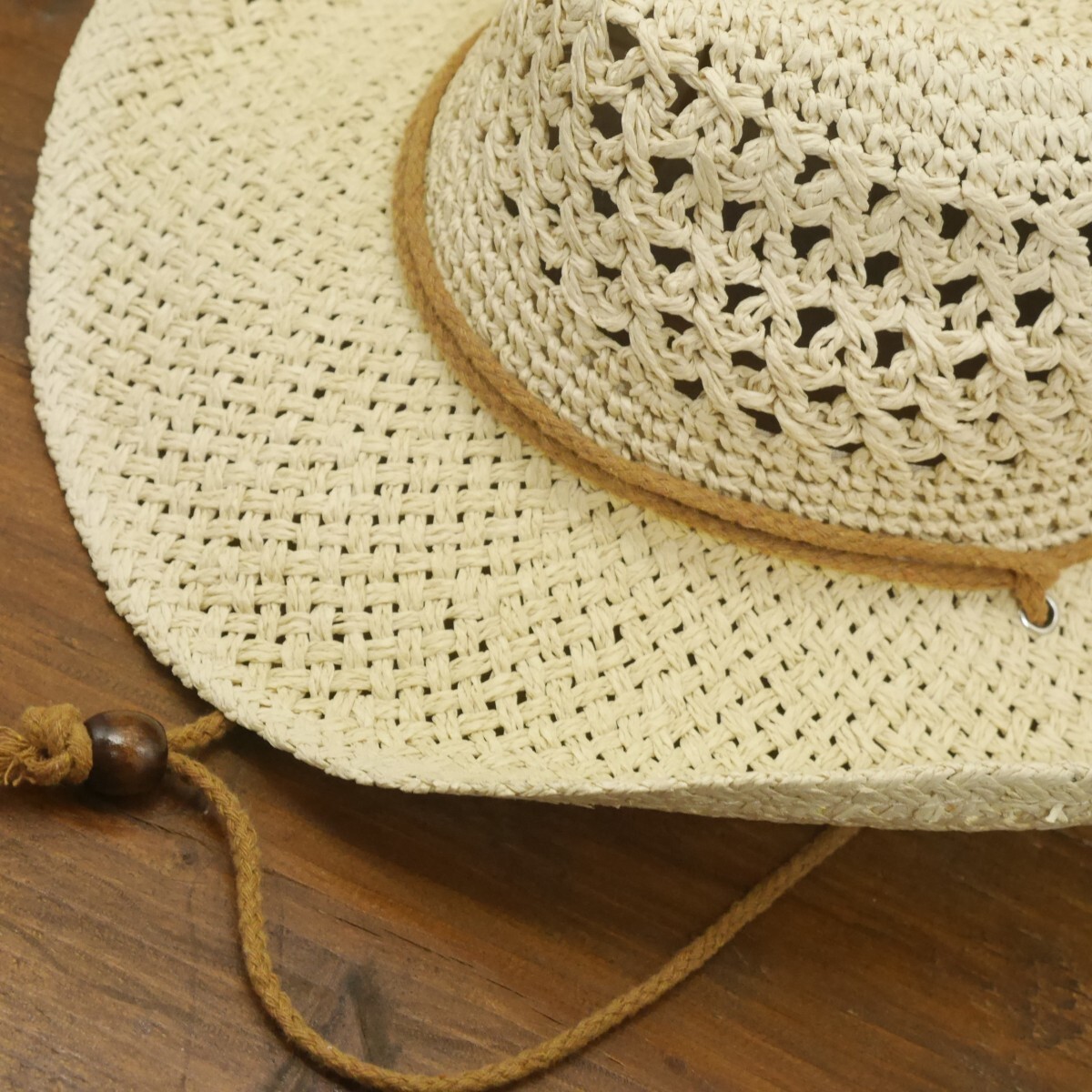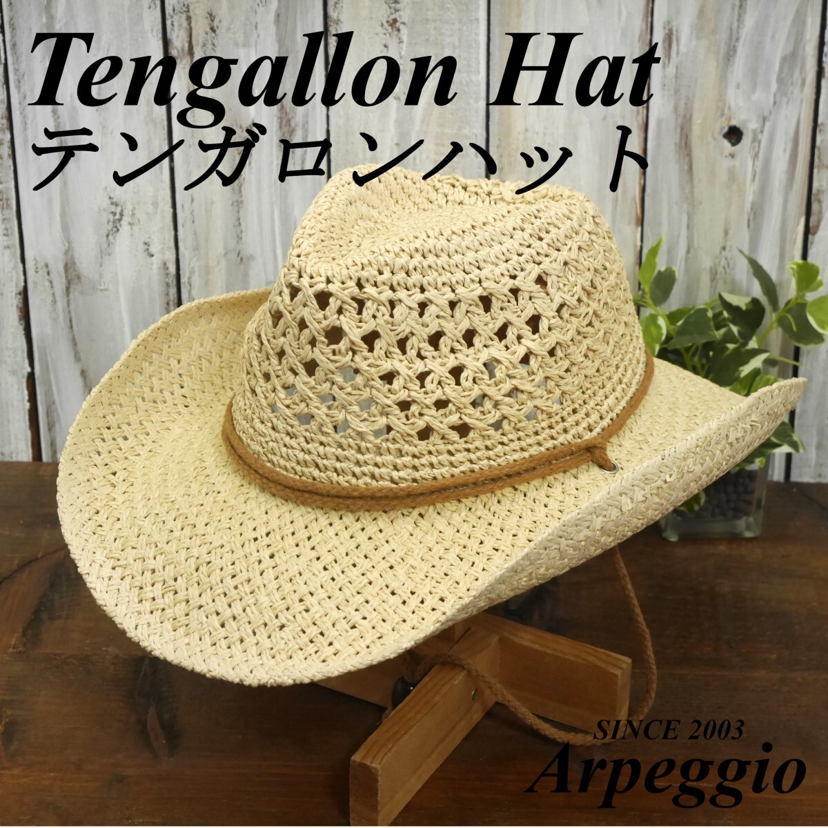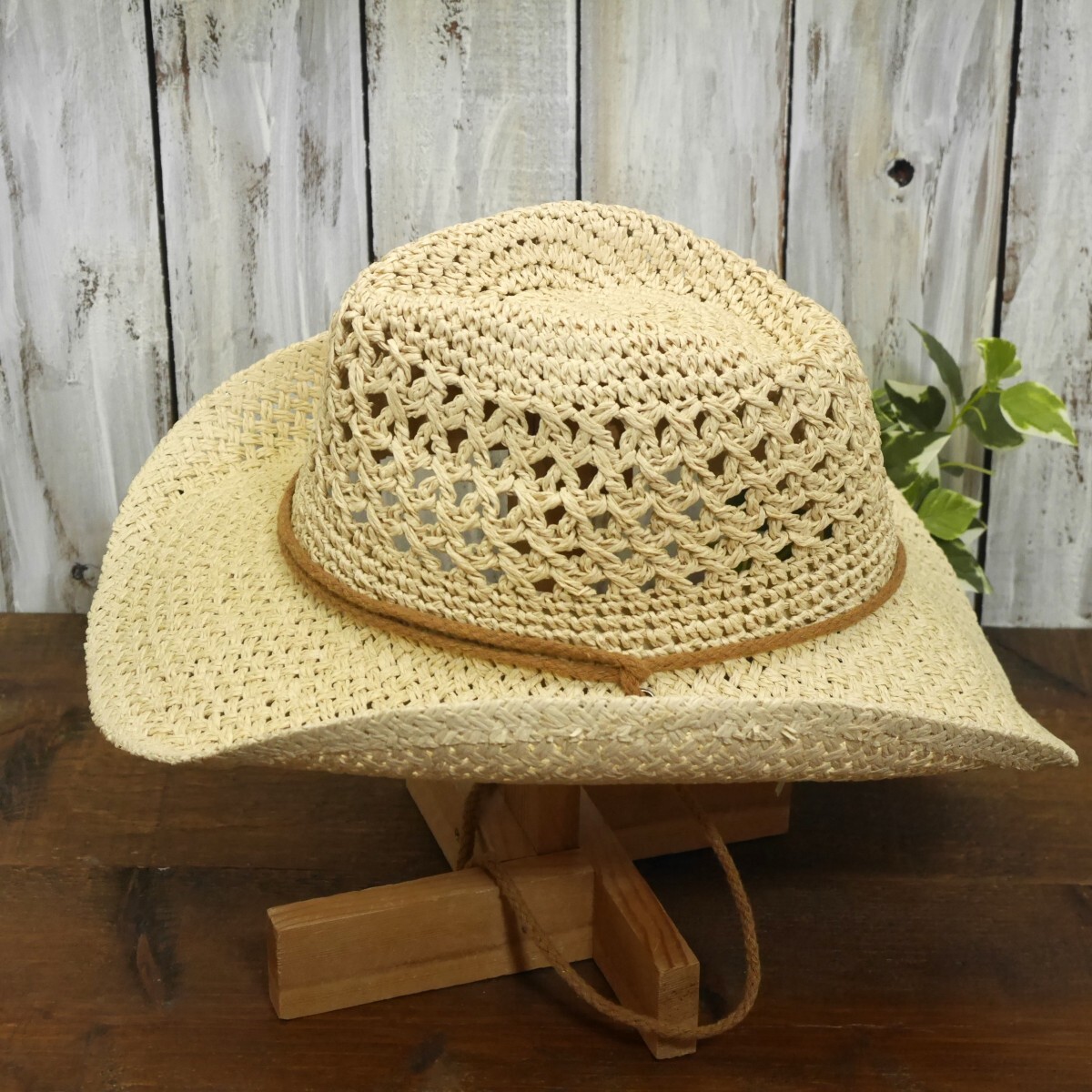 テンガロンハット ウエスタンハット 編み込み ストローハット アイボリー オフホワイト サイズ調整可 送料\450 男女兼用