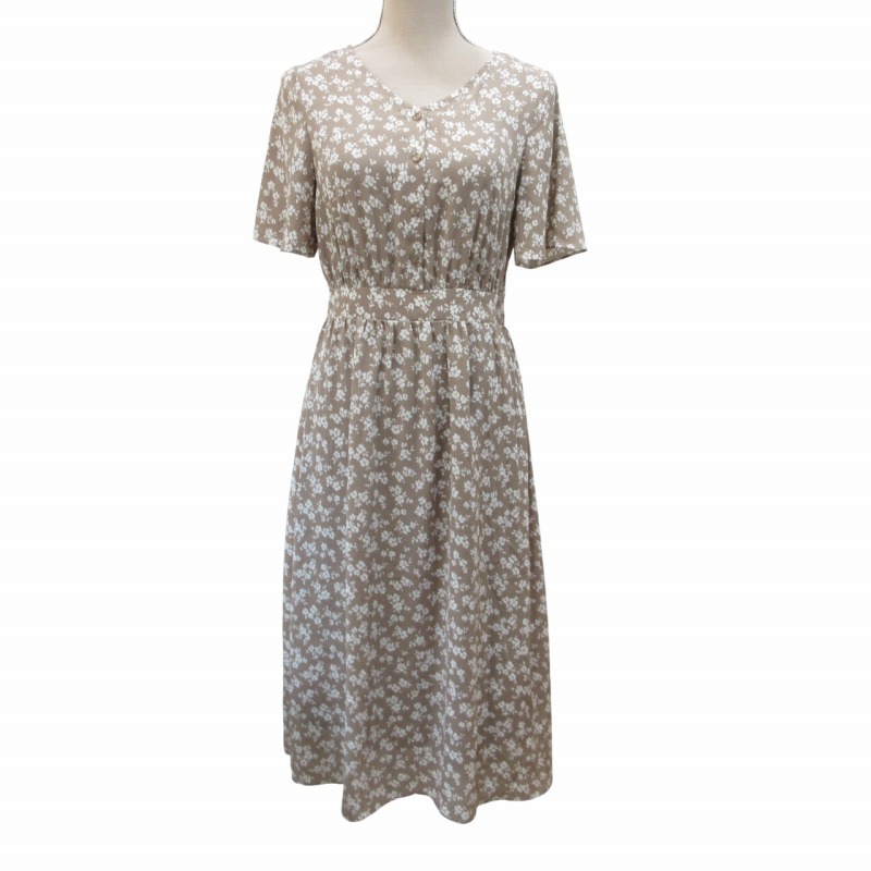 ナチュラルビューティーベーシック NATURAL BEAUTY BASIC 美品 20SS バイカラーフラワープリントワンピース 花柄 ギャザー ロング 半袖 M