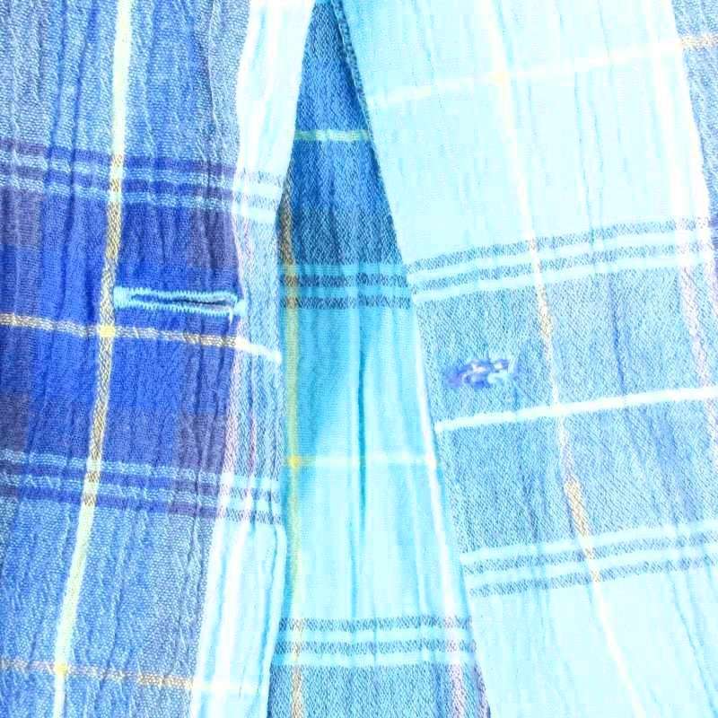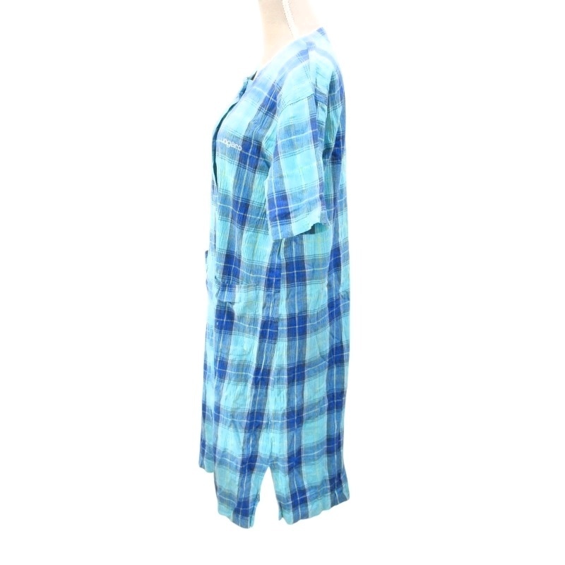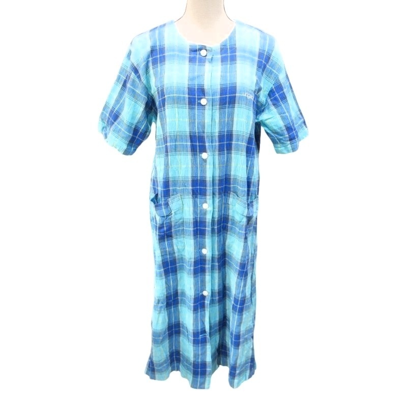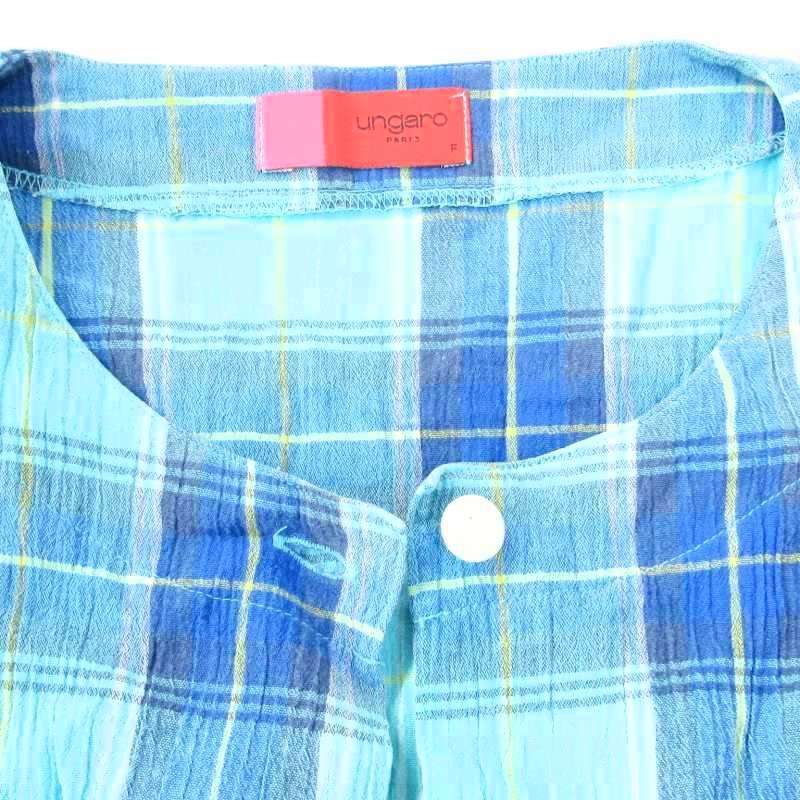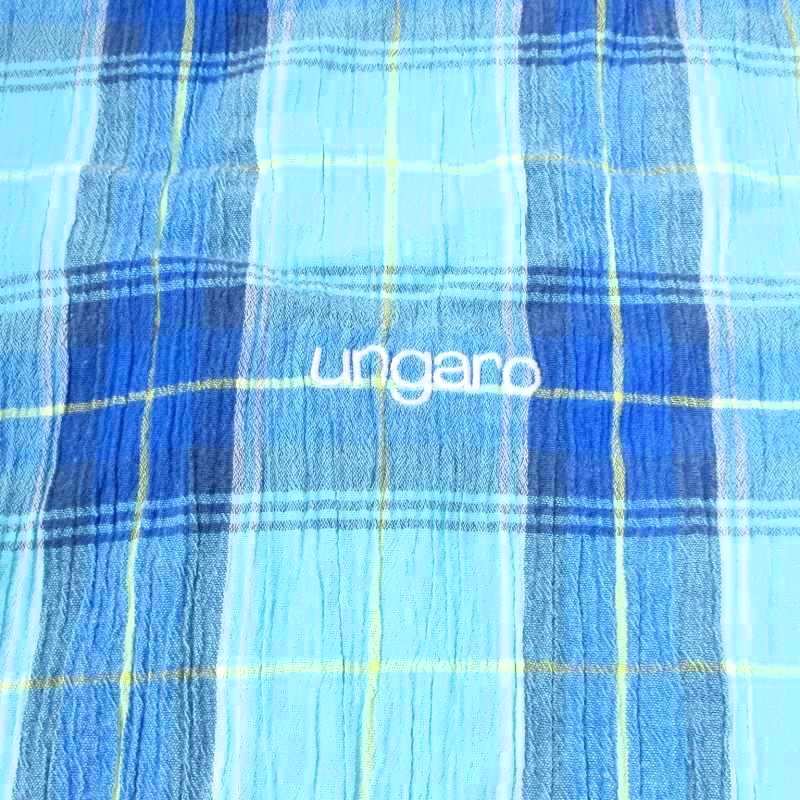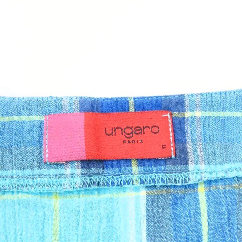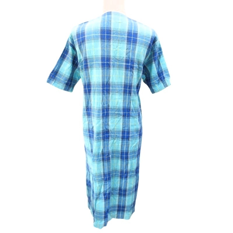 ウンガロ UNGARO ヴィンテージ ワンピース チェック シワ加工 半袖 ロング F 青 ブルー 系 0822