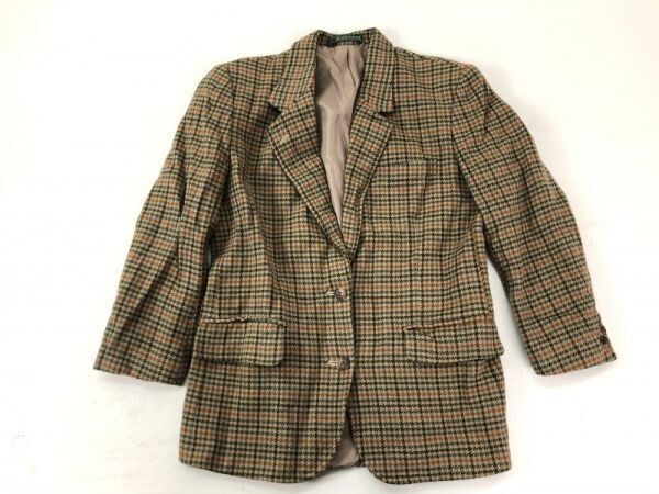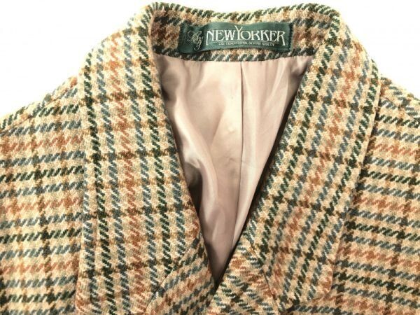 ニューヨーカー NEWYORKER トラッド 古着 ガンクラブチェック ハウンドトゥース テーラード ジャケット レディース ウール100% 日本製 9AR です。