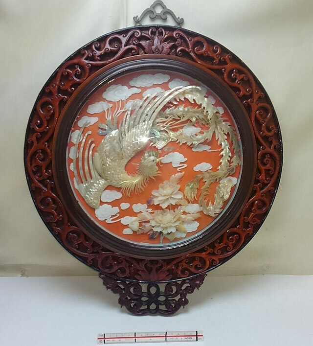 中国美術? 額入り 絵画 貝細工 壁掛け 直径44cm