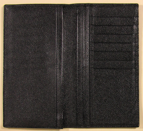 使用品ですので多少の擦れや汚れはあります。色が黒いので汚れが有ったとしてもわかりません。汚れに関しては気になる物はないです。ひどいダメージもないです。普通に使える状態です。このお財布には小銭入れはありません。サイズはH17.5xW9.5cmくらいです。