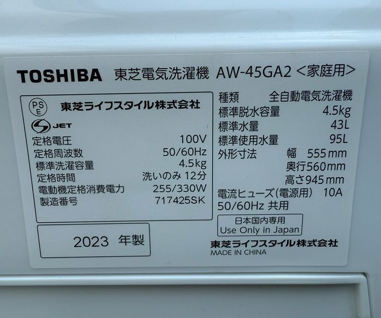 | ♪♪ 極美品 TOSHIBA 東芝 全自動洗濯機 4.5kg AW-45GA2 Wダブルシャワー洗浄 白 ステンレス槽 2023年製♪♪ | |